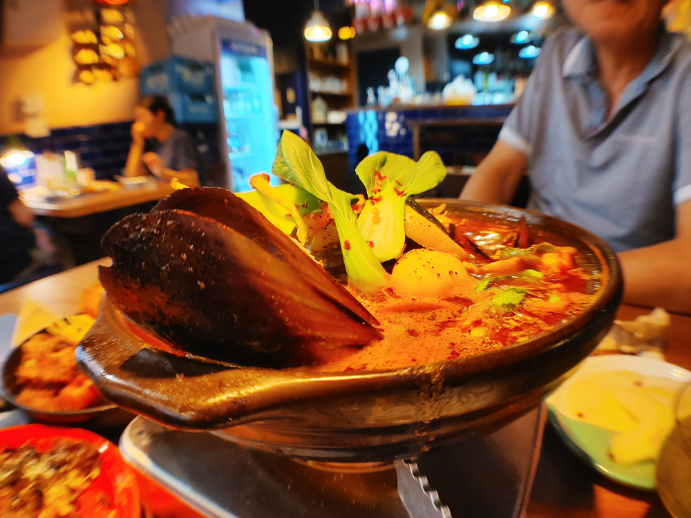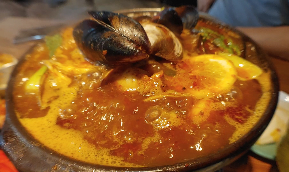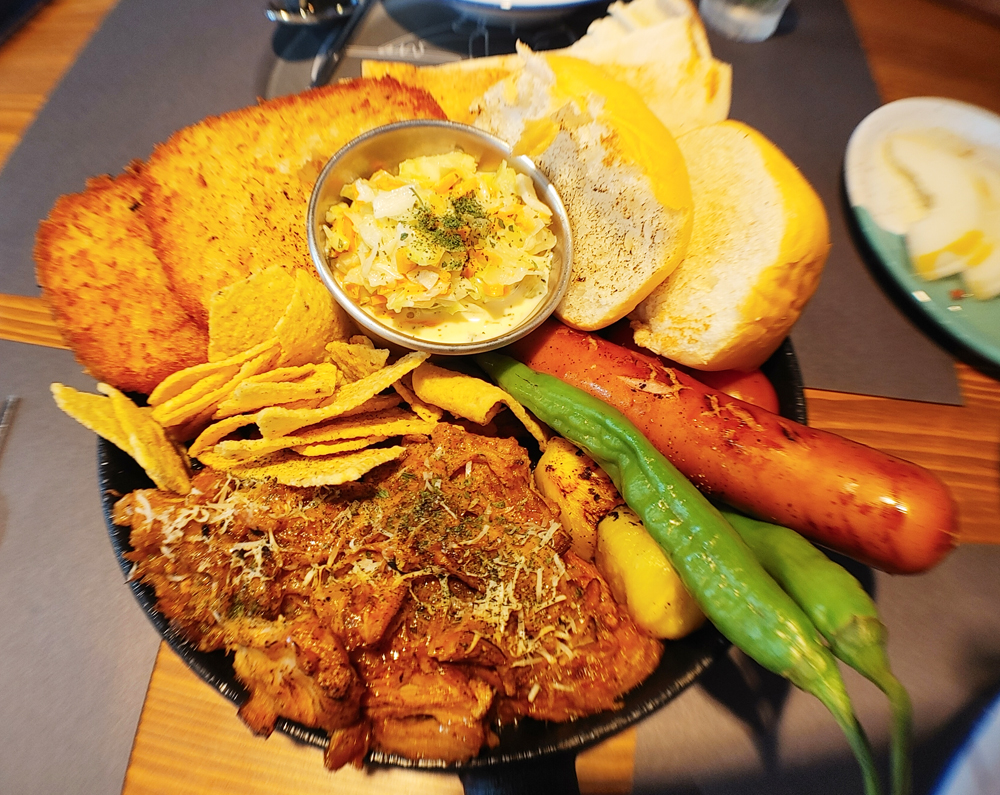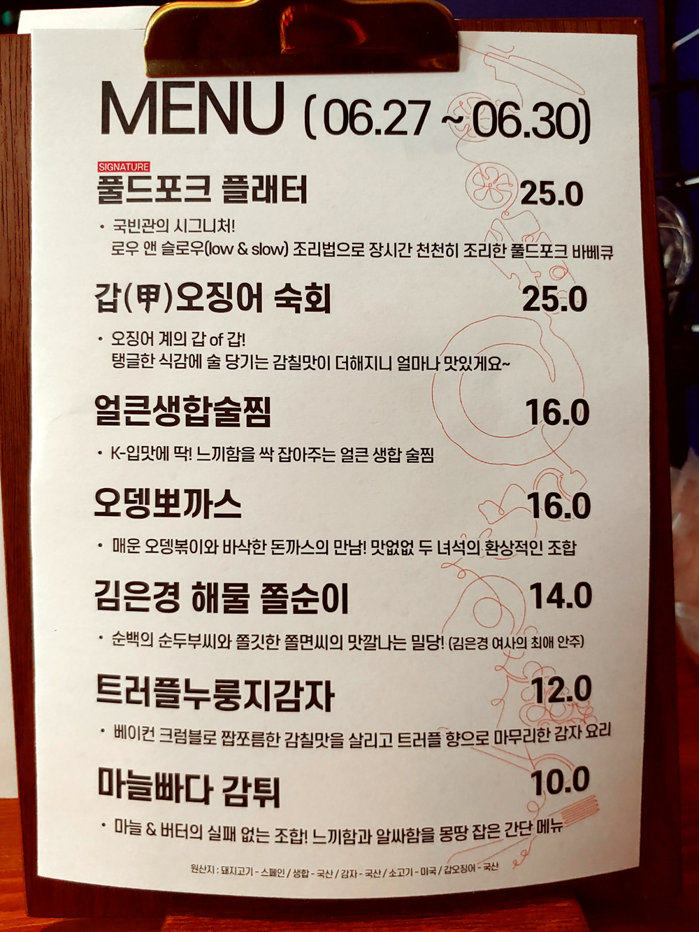 망원동 망리단길 맛집 국빈관의 풀드포크플래터와 트러플누룽지감자 그리고 얼큰생합술찜입니다.