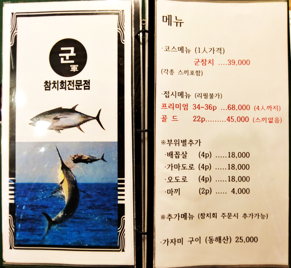 1인 39,000원의 코스 메뉴입니다.