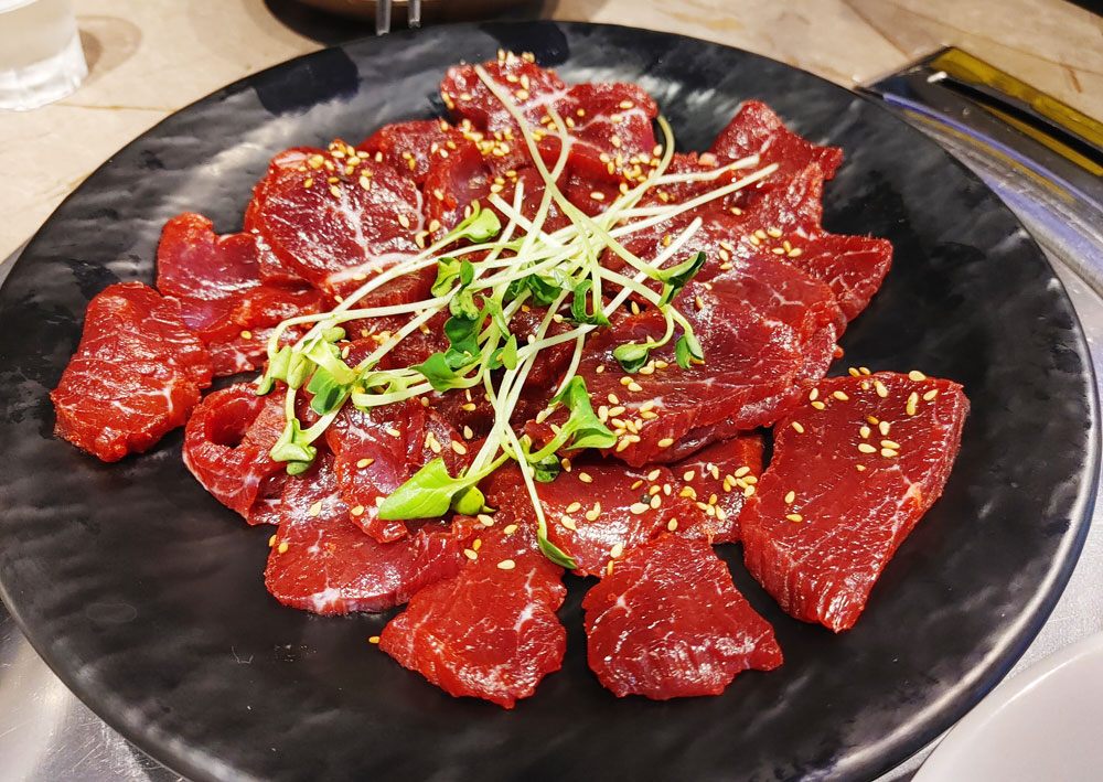 사진은 토종 한우 뭉티기와 샤브샤브, 제주 흑돼지 삼겹살입니다.