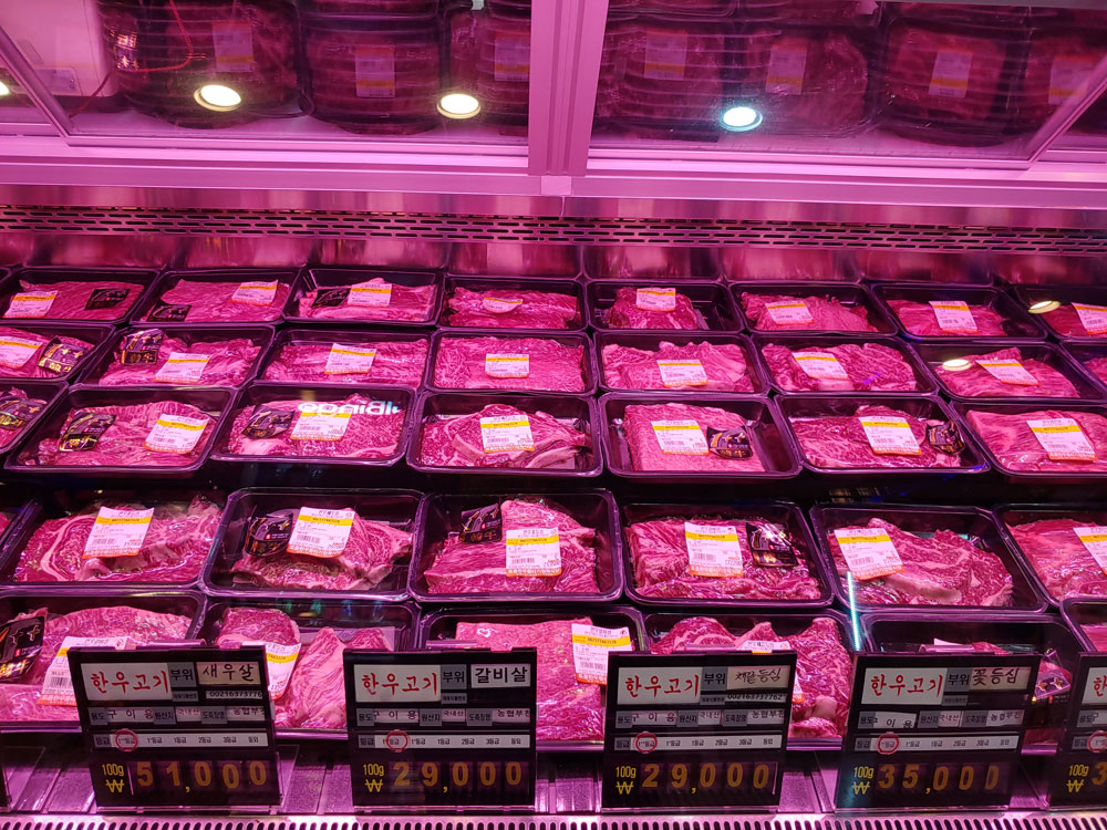 한우와 제주 흑돼지가 준비되어 있습니다.