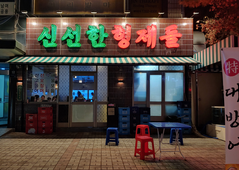 강남역과 신논현역 사이에 있는 해산물 실내포차 '신선한형제들'입니다.