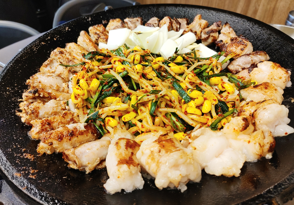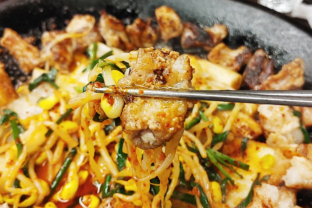 콩나물부침과 함꼐 먹는 곱창의 맛이 별미입니다.