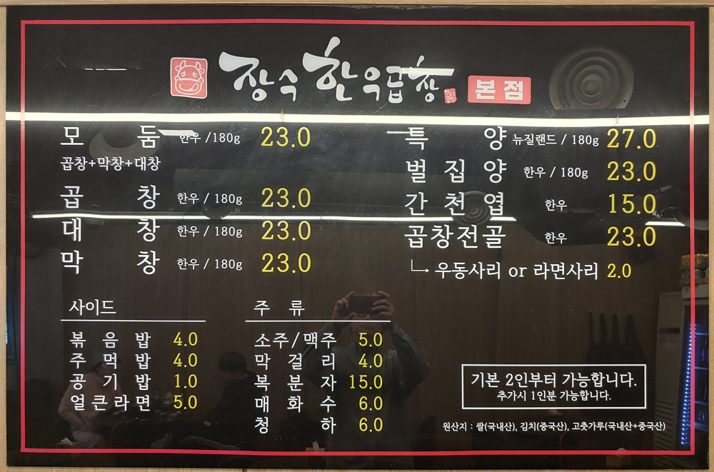 3호선 전철 원당역에서 가까운 장수한우곱창 본점입니다.