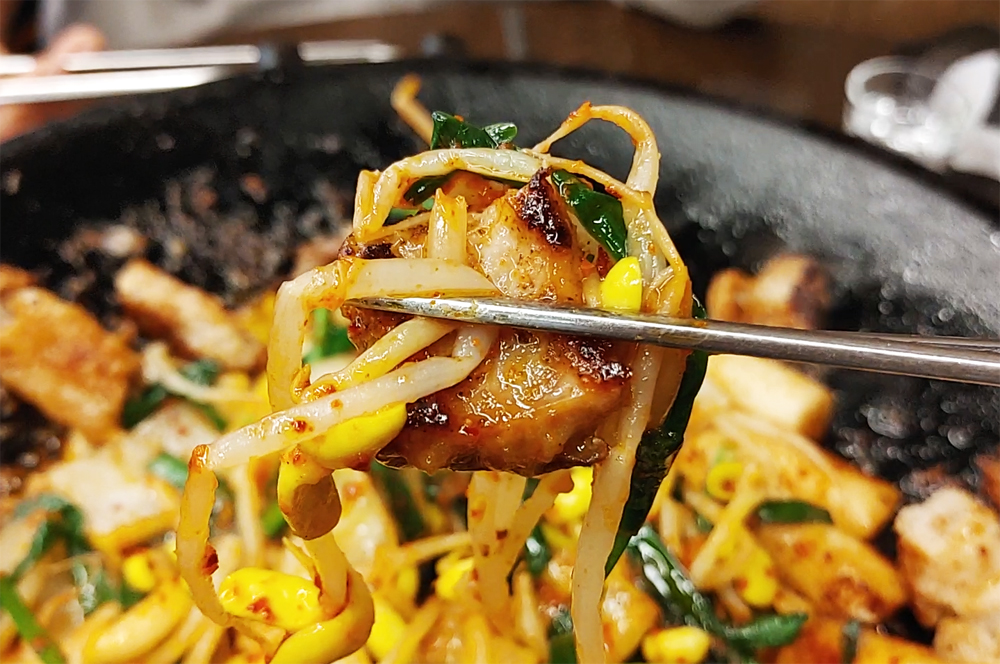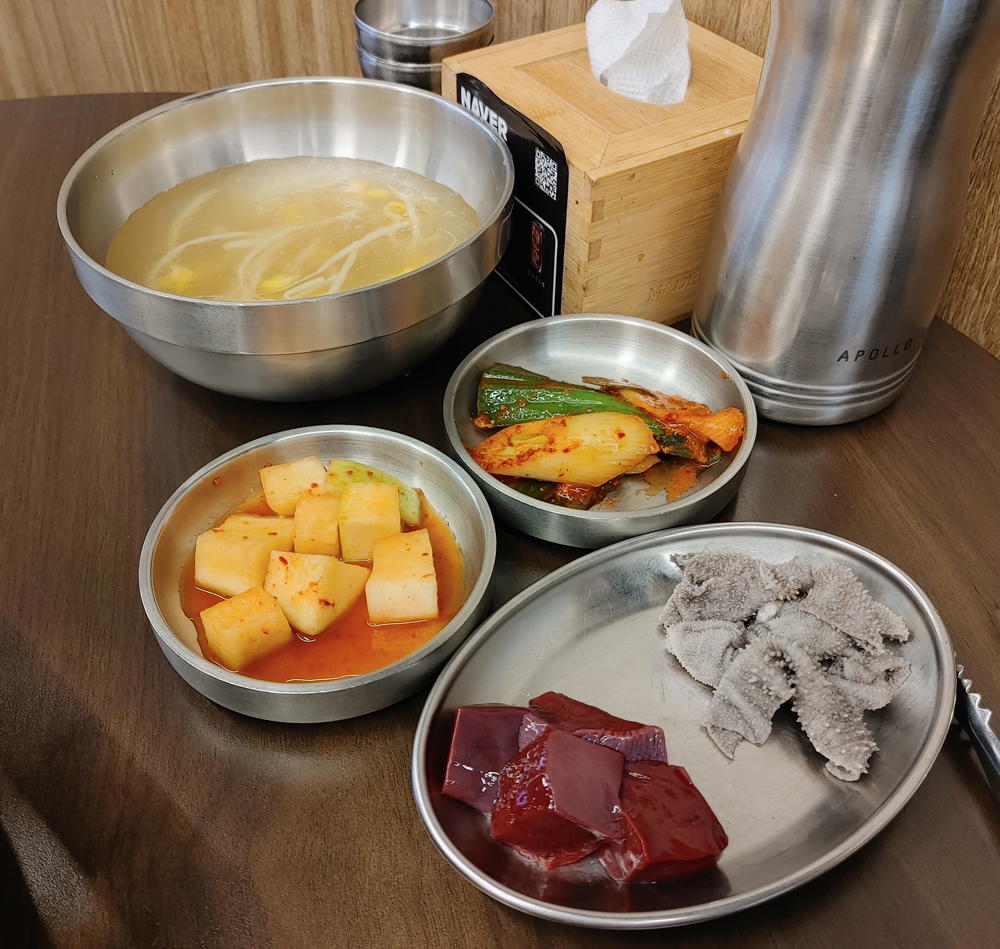 콩나물부침과 함꼐 먹는 곱창의 맛이 별미입니다.