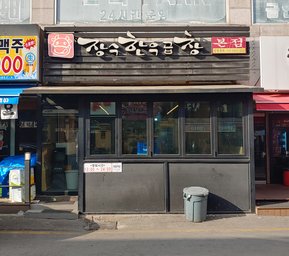 3호선 전철 원당역에서 가까운 장수한우곱창 본점입니다.