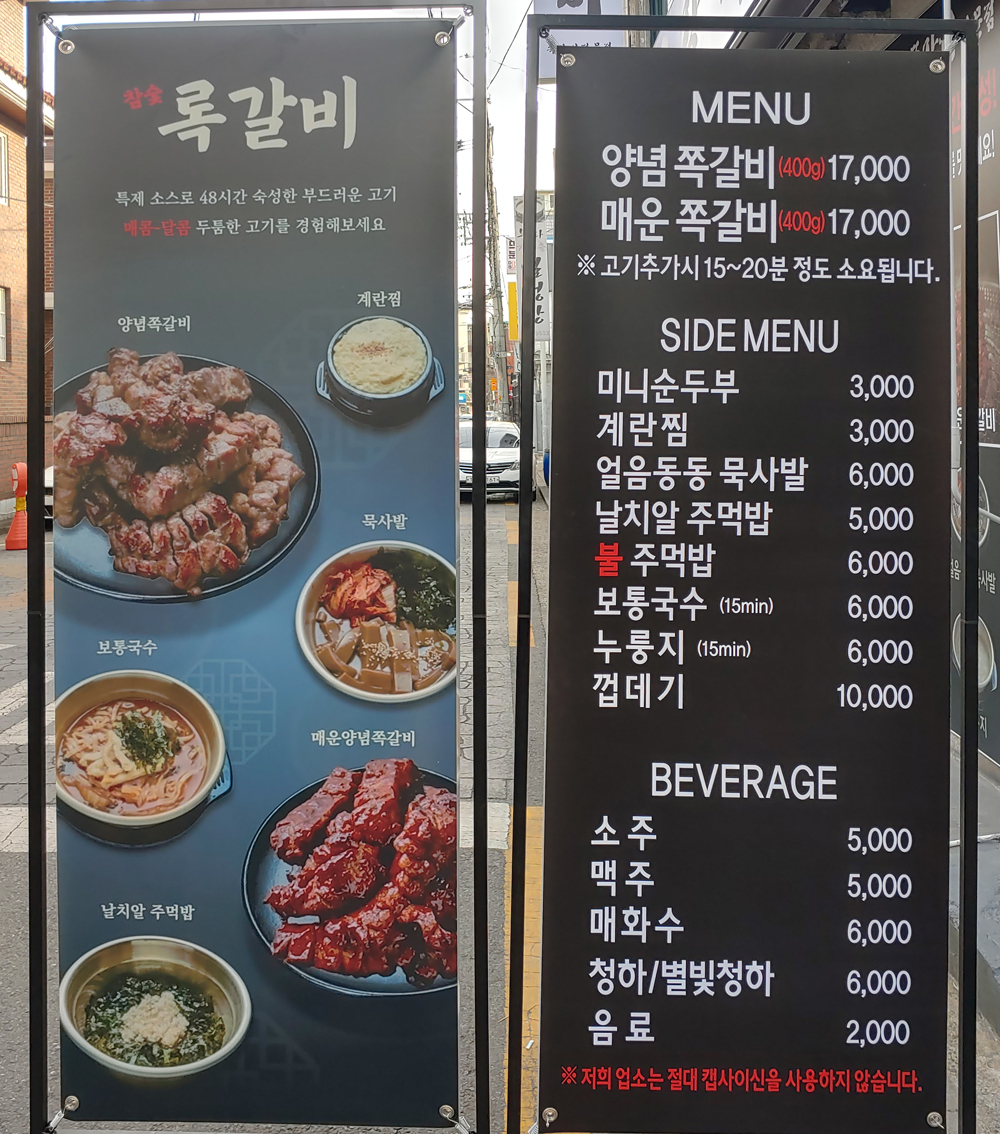 연신내에 있는 쪽갈비 전문점 록갈비입니다.