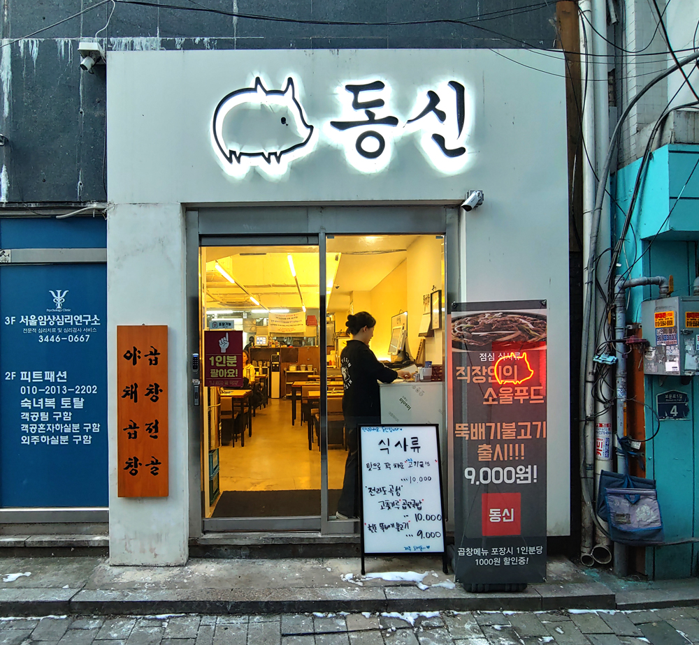 신설역 인근에 자리한 돼지곱창 식당입니다.