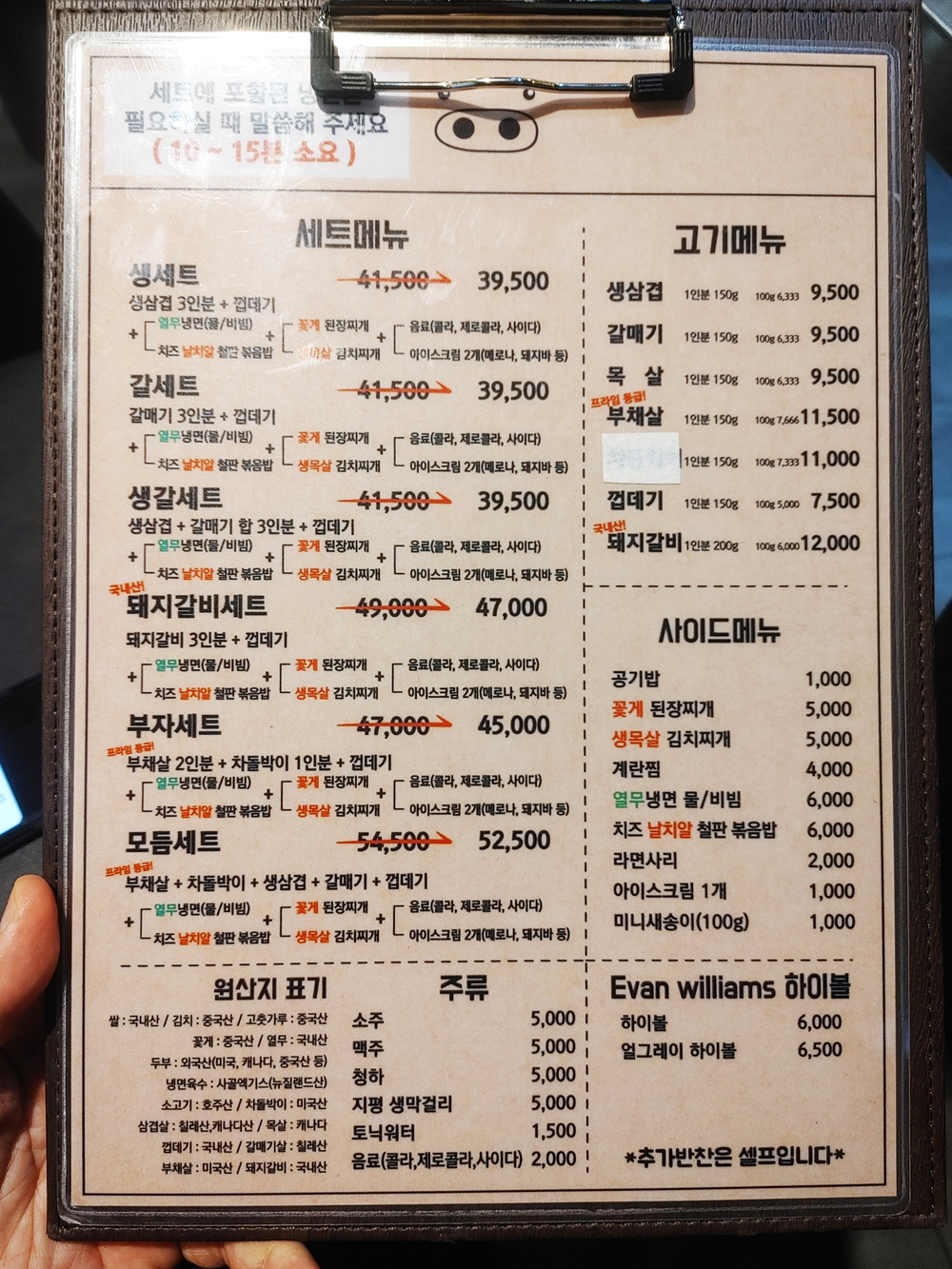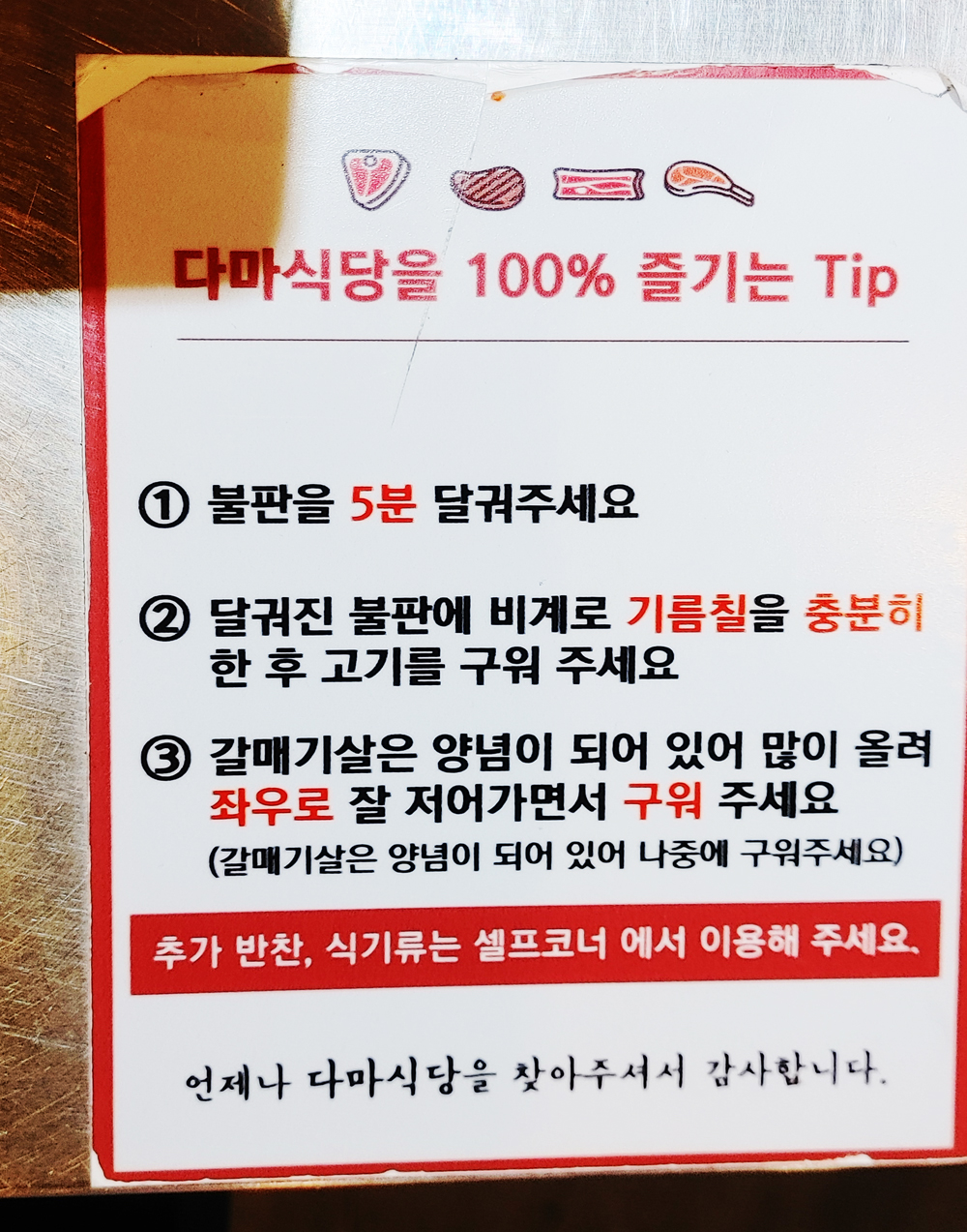삼겹살, 갈매기살, 부채살 등 주문한 고기가 모두 모구 맛있었어요. 다마식당 다 마싯당!