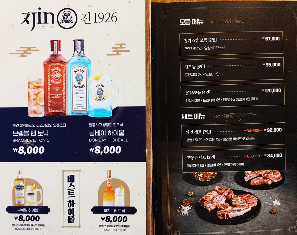 수락산역 먹자골목에 자리한 진1926의 징기스칸 모듬 2인분입니다.