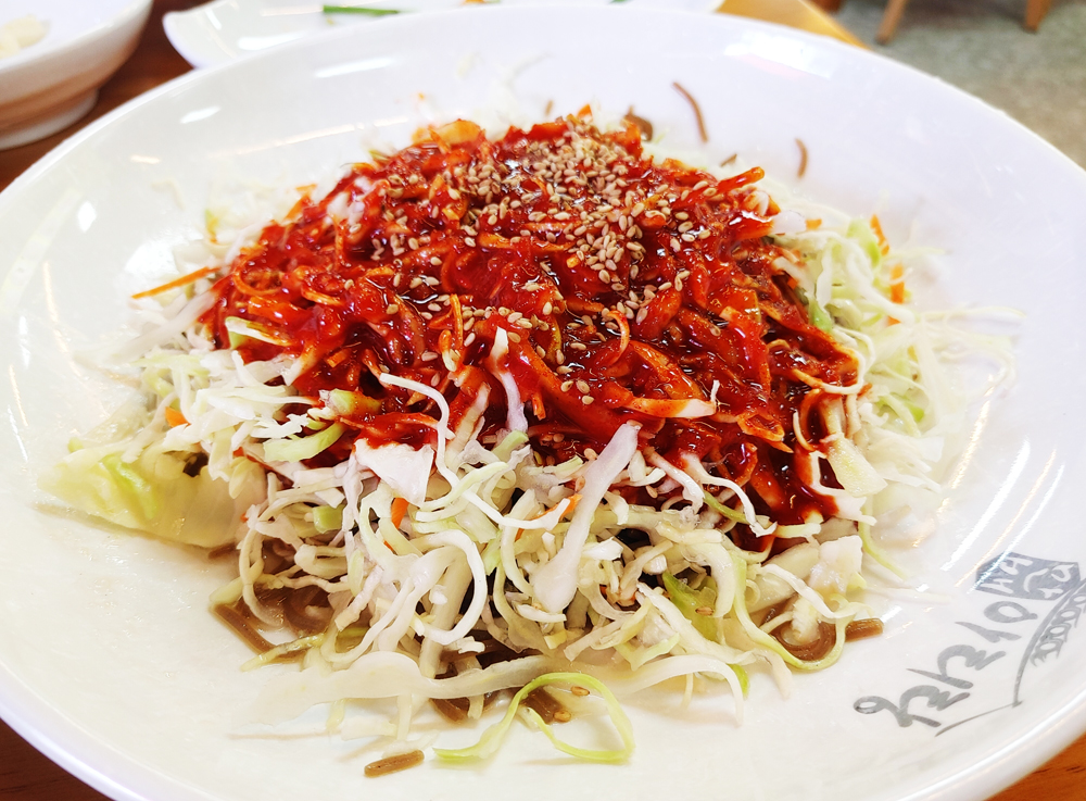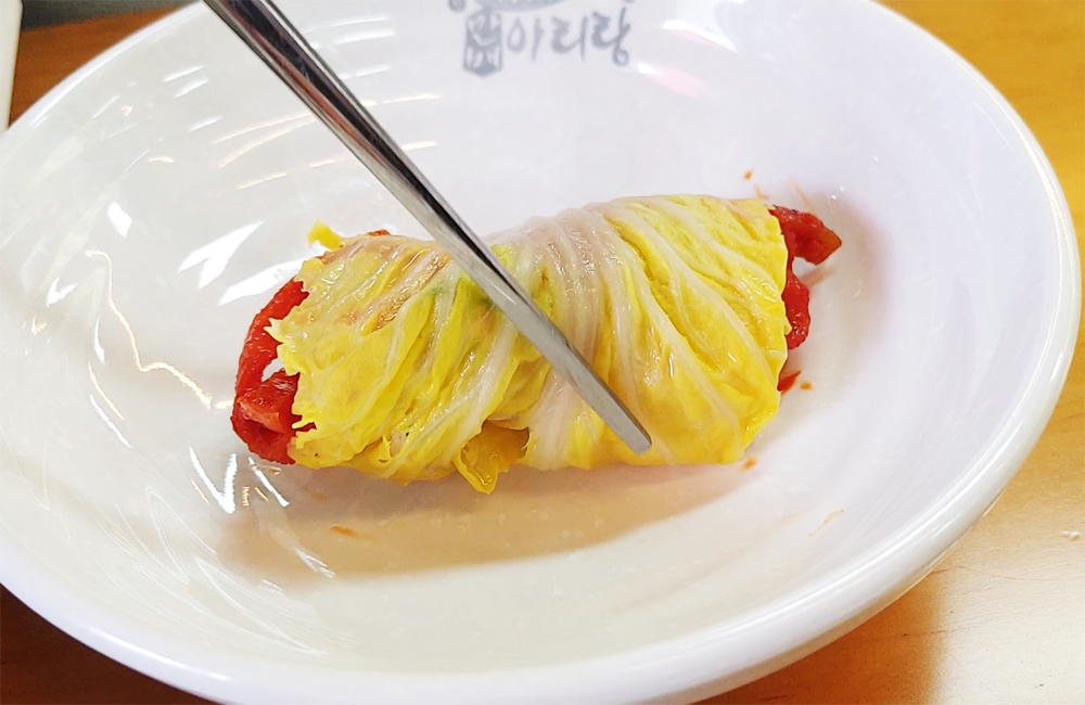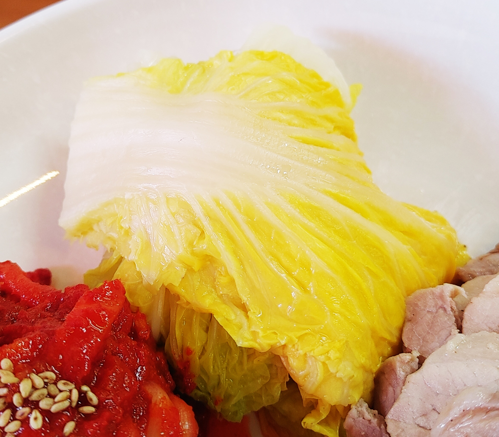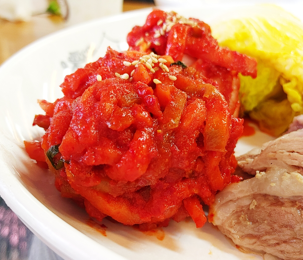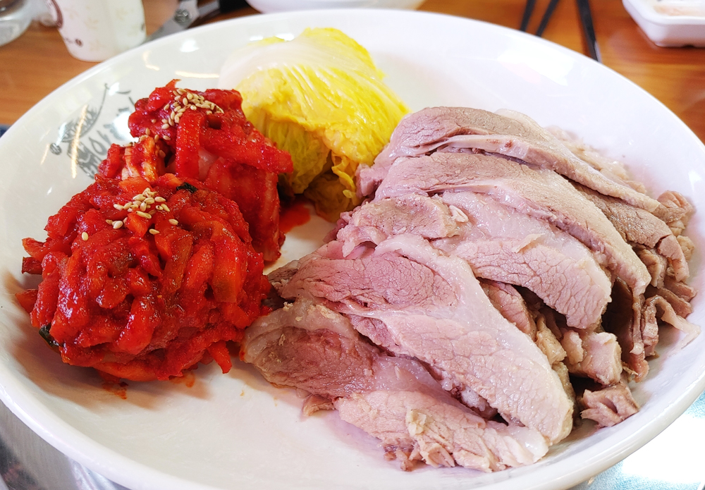 김치보쌈이나 배추보쌈, 반반보쌈 등 보쌈메뉴를 주문하면 칼국수와 막국수 중 한가지를 서비스로 제공합니다.