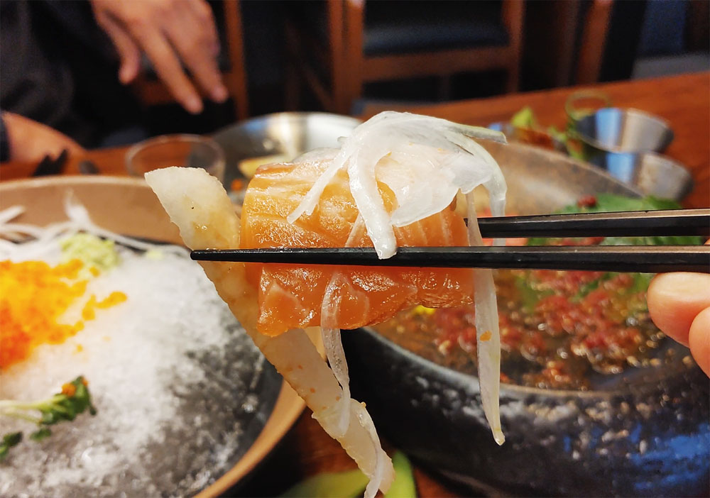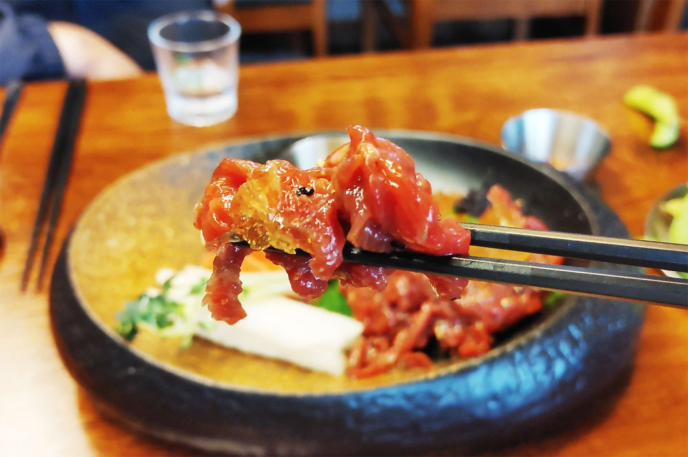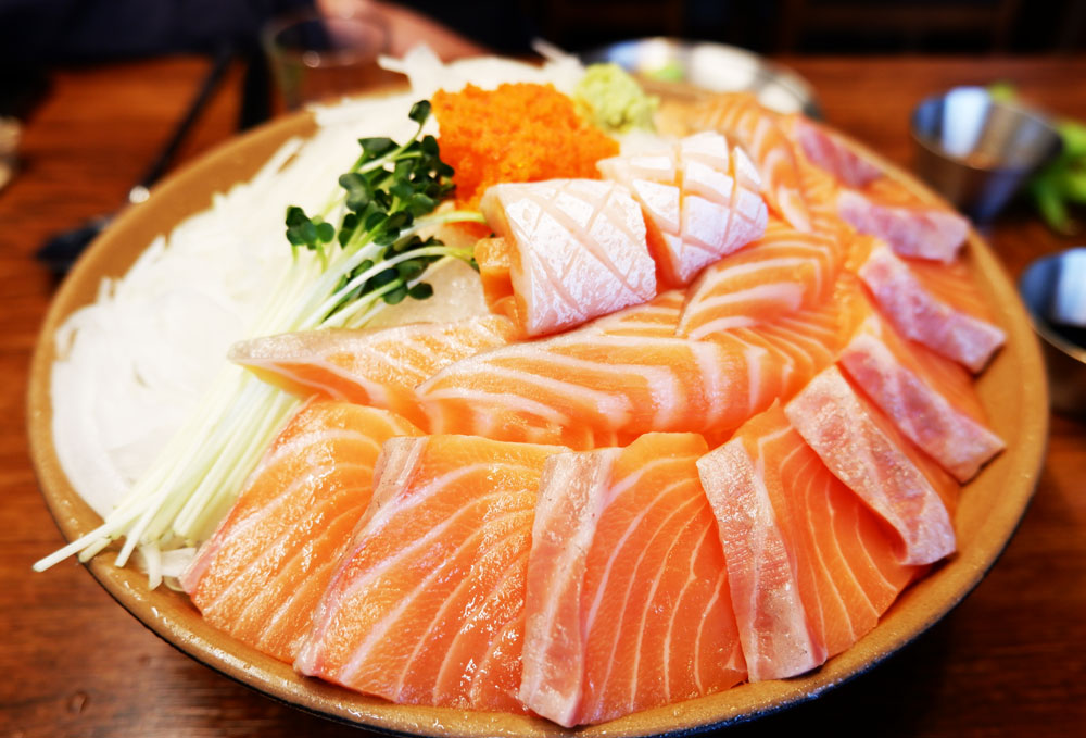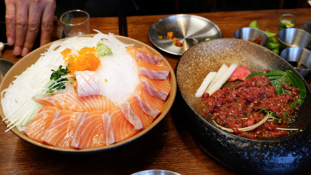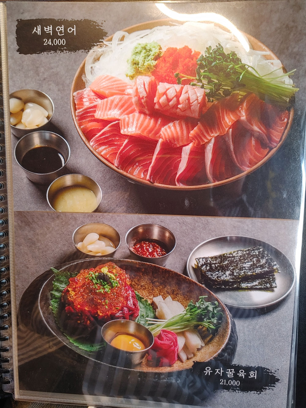유자꿀육회와 새벽연어를 함께 맛볼 수 있는 A세트입니다.