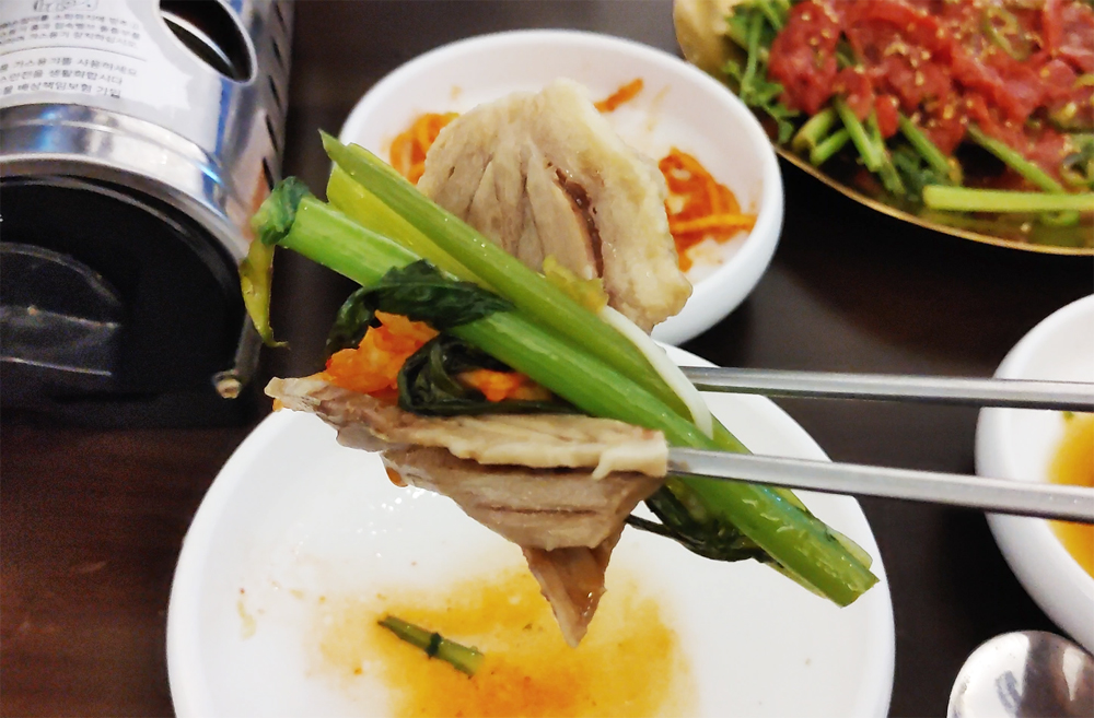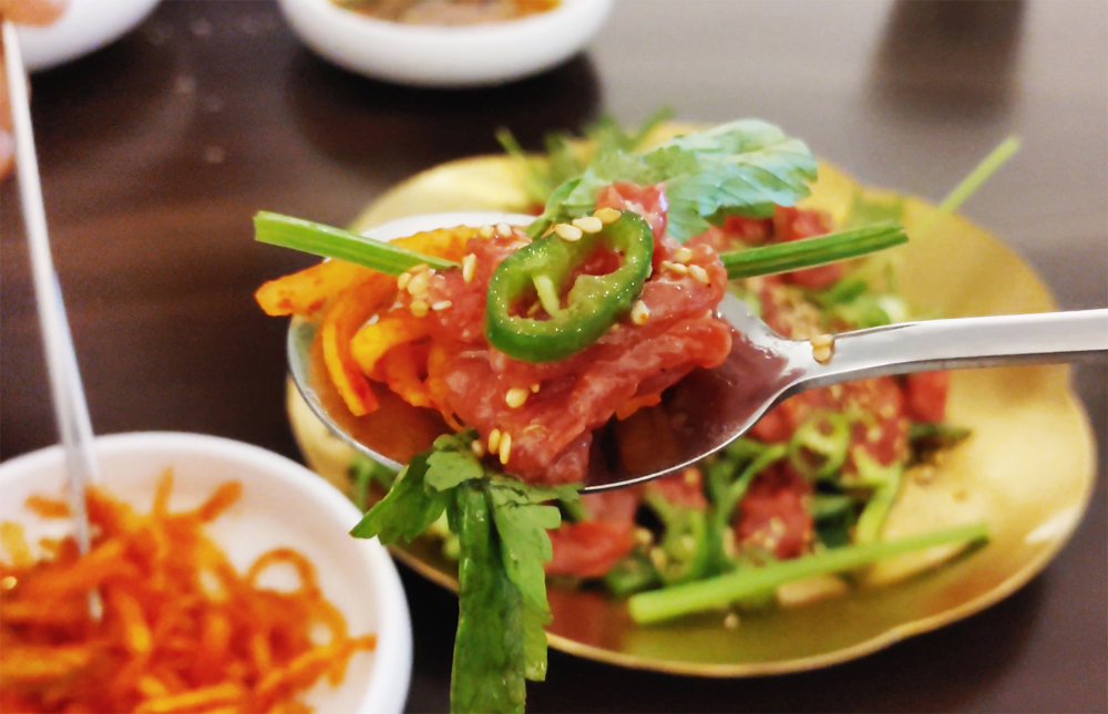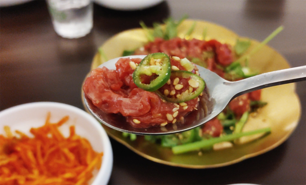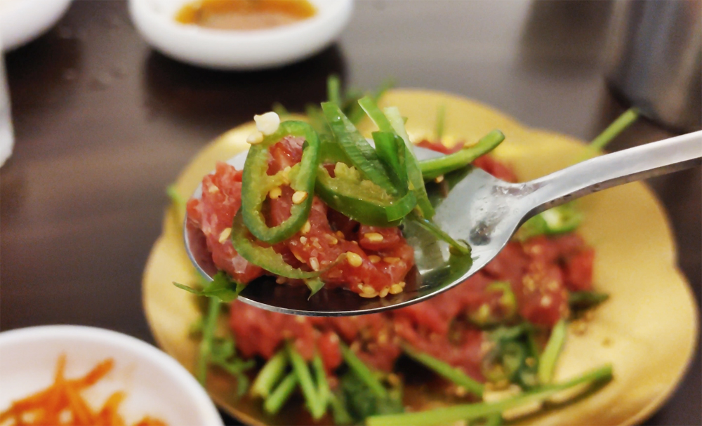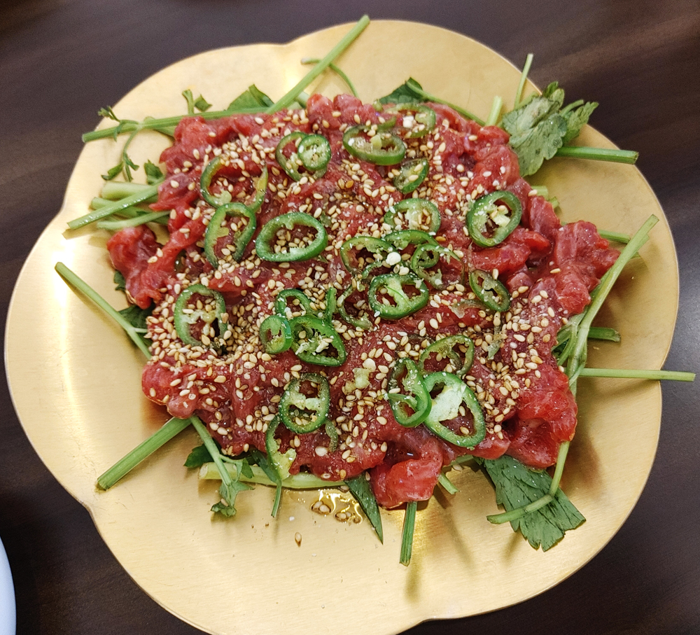 반접시 메뉴로 육회와 스지 볶음을 먹었네요.