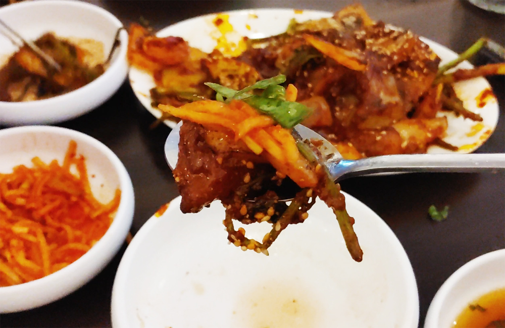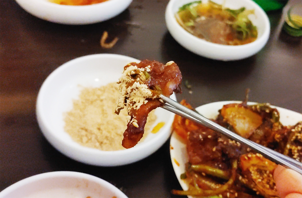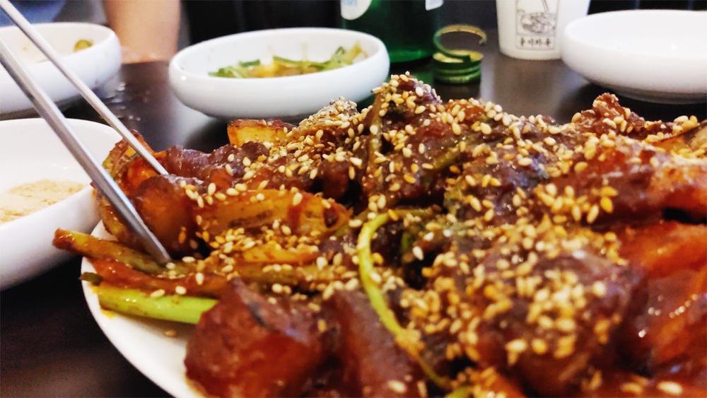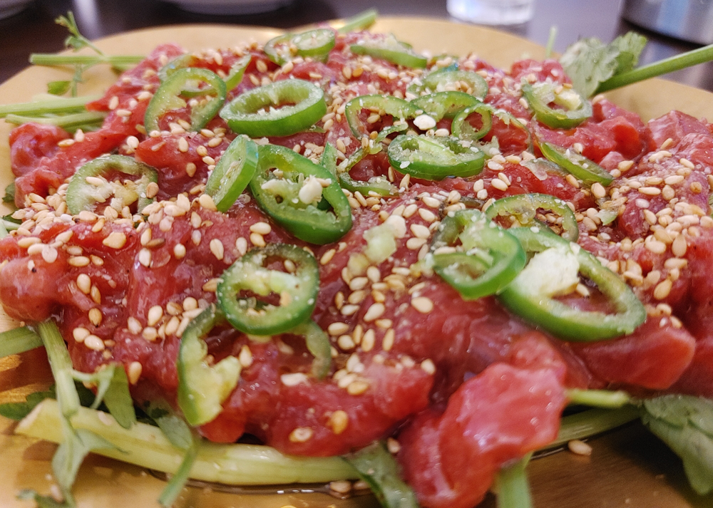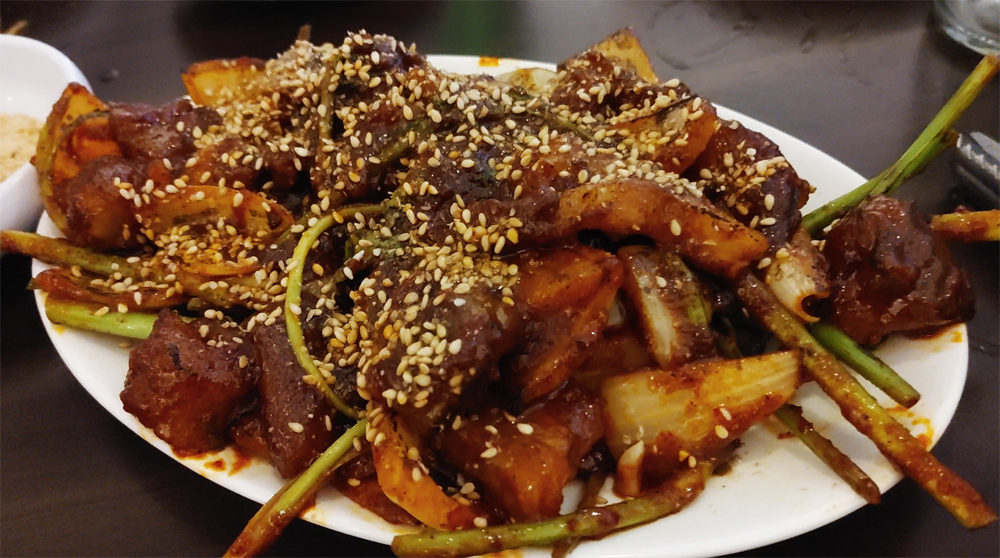 반접시 메뉴로 육회와 스지 볶음을 먹었네요.