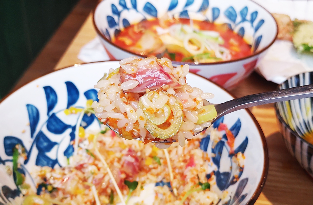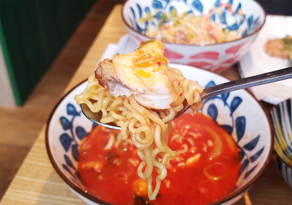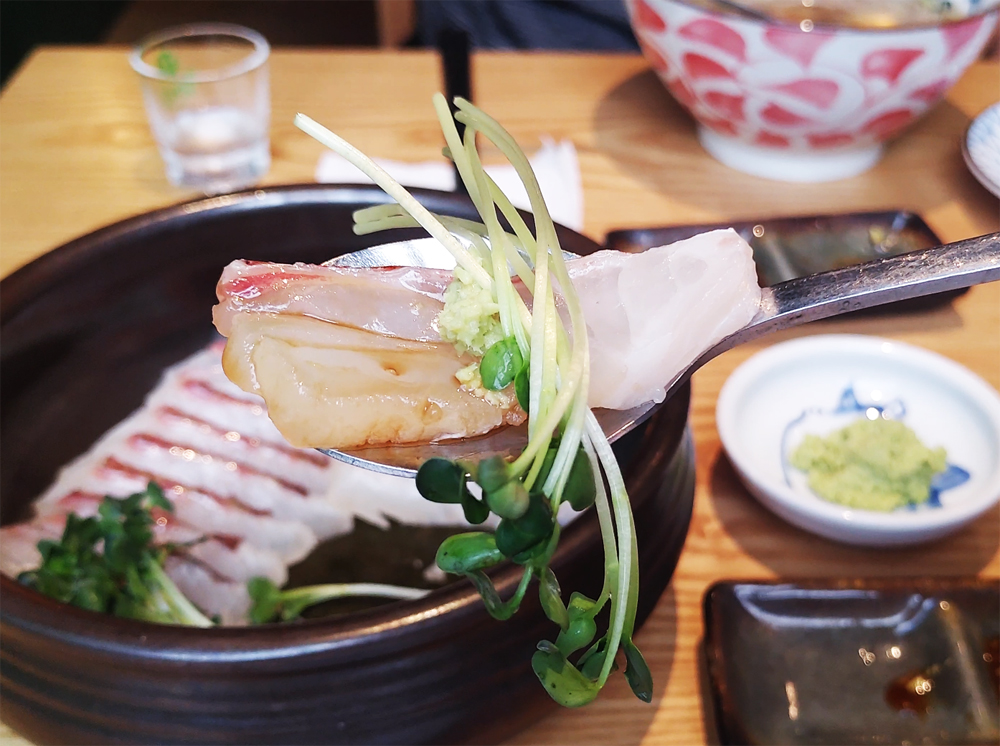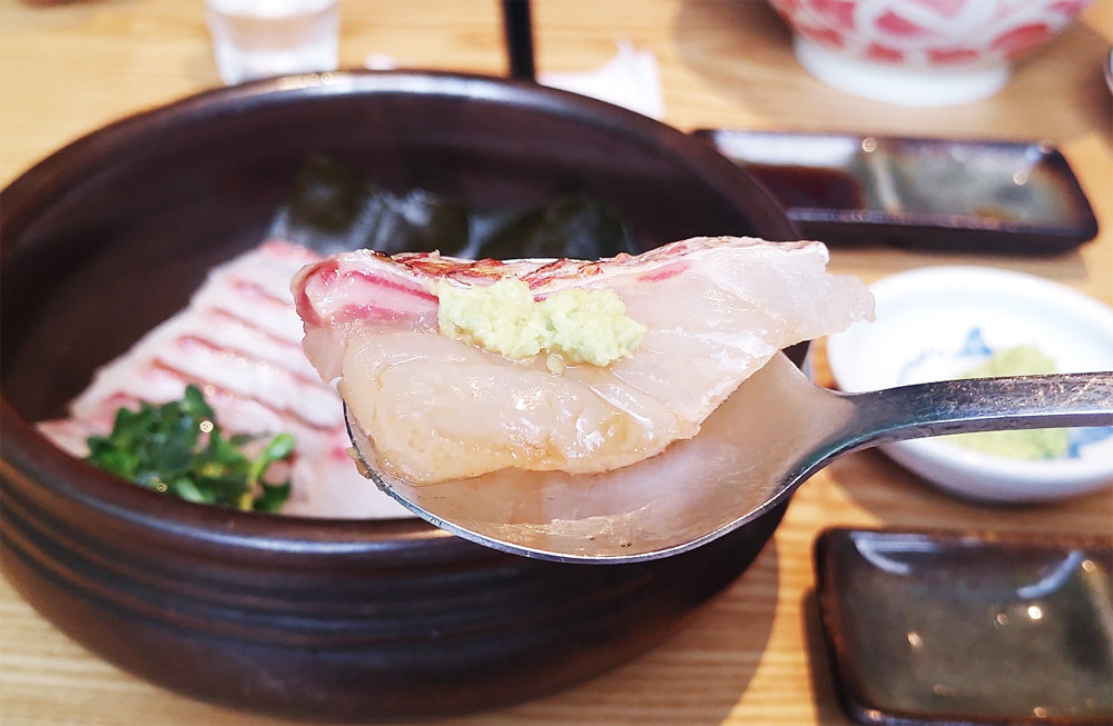 식사는 도미덮밥과 도미해물라면 중 선택할 수 있습니다.