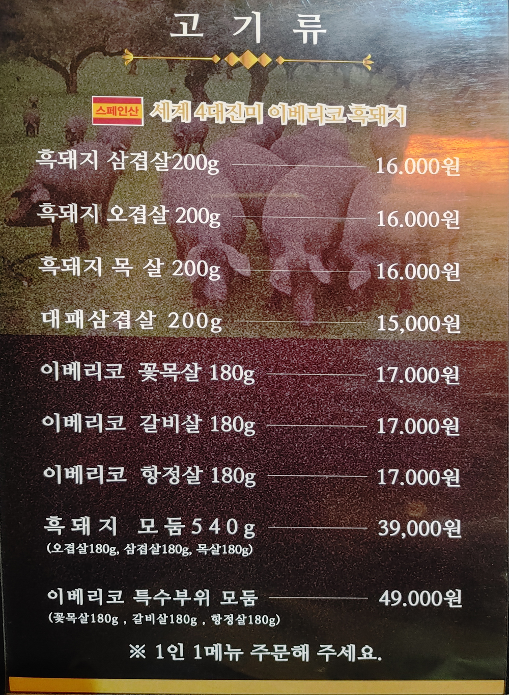 이베리코흑돼지 신당역점의 이베리코 특수부위 모둠입니다.