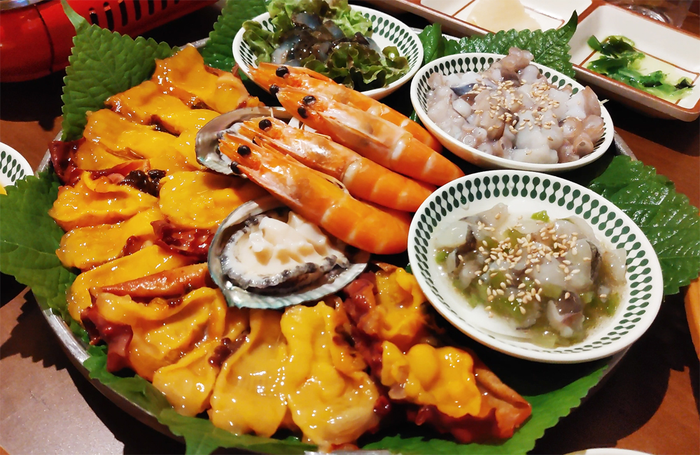 추천모듬회와 싱싱이(해산물 모듬) 그리고 매운탕과 왕새우감자튀김입니다.