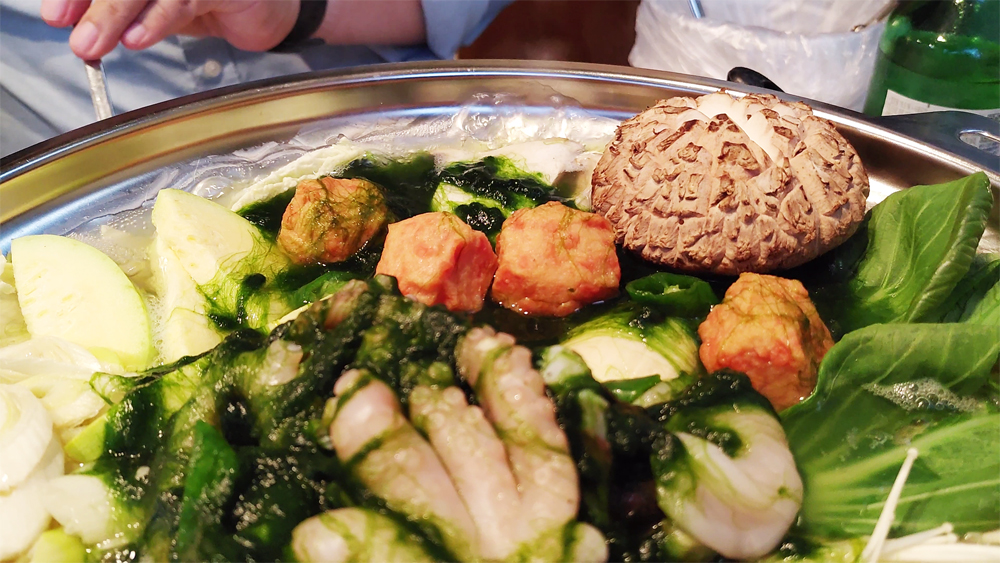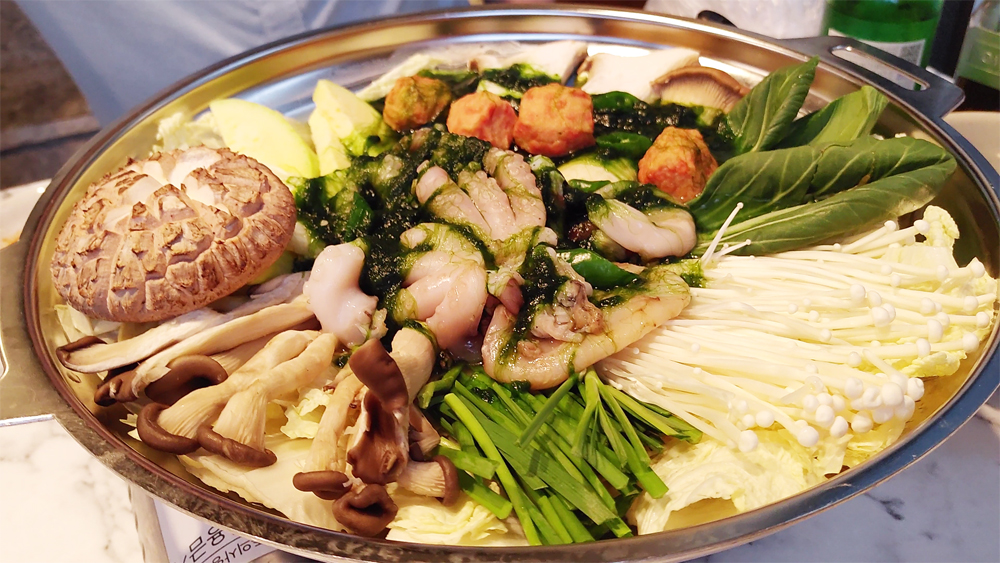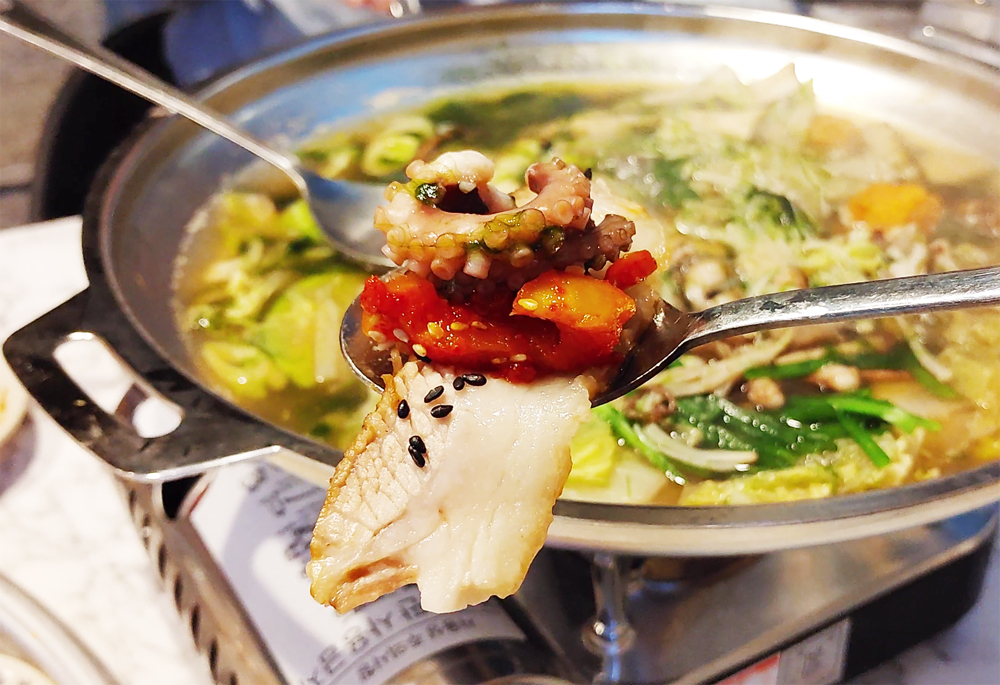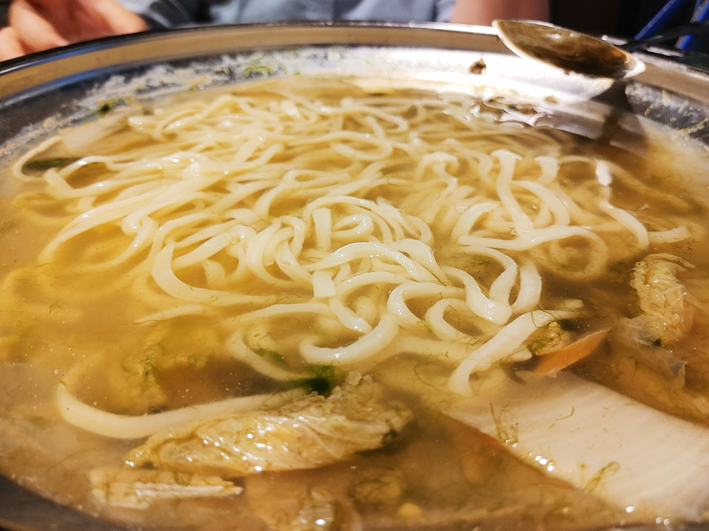 매생이연포보쌈은 매생이연포탕과 보쌈수육이 나오구요, 나중에 칼국수를 줍니다.