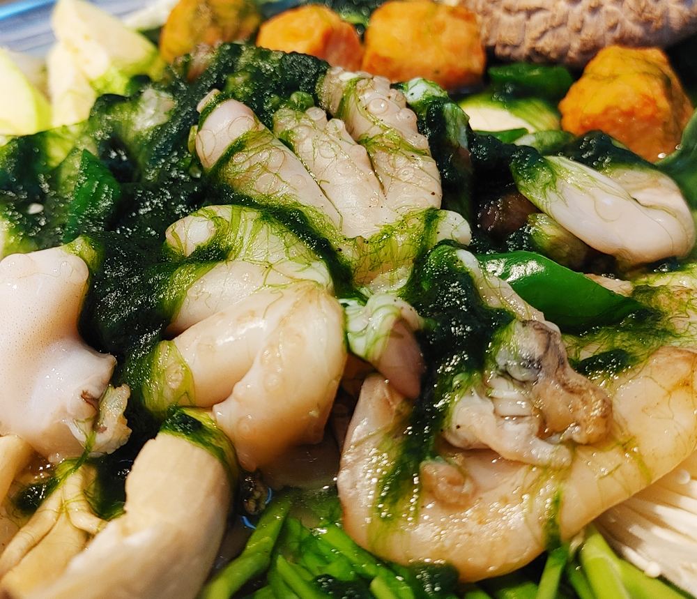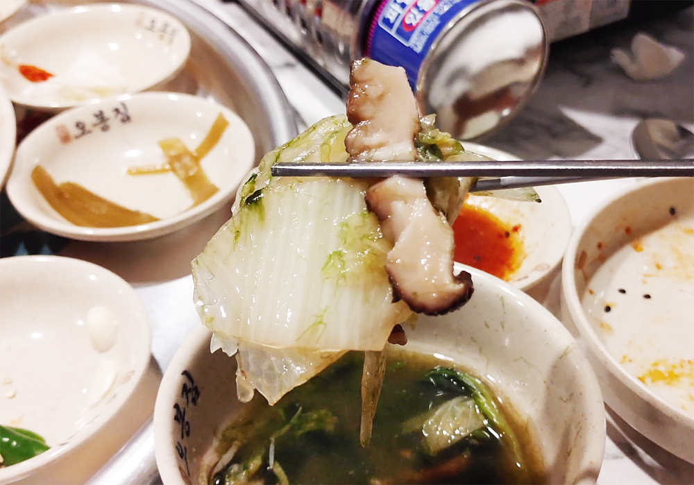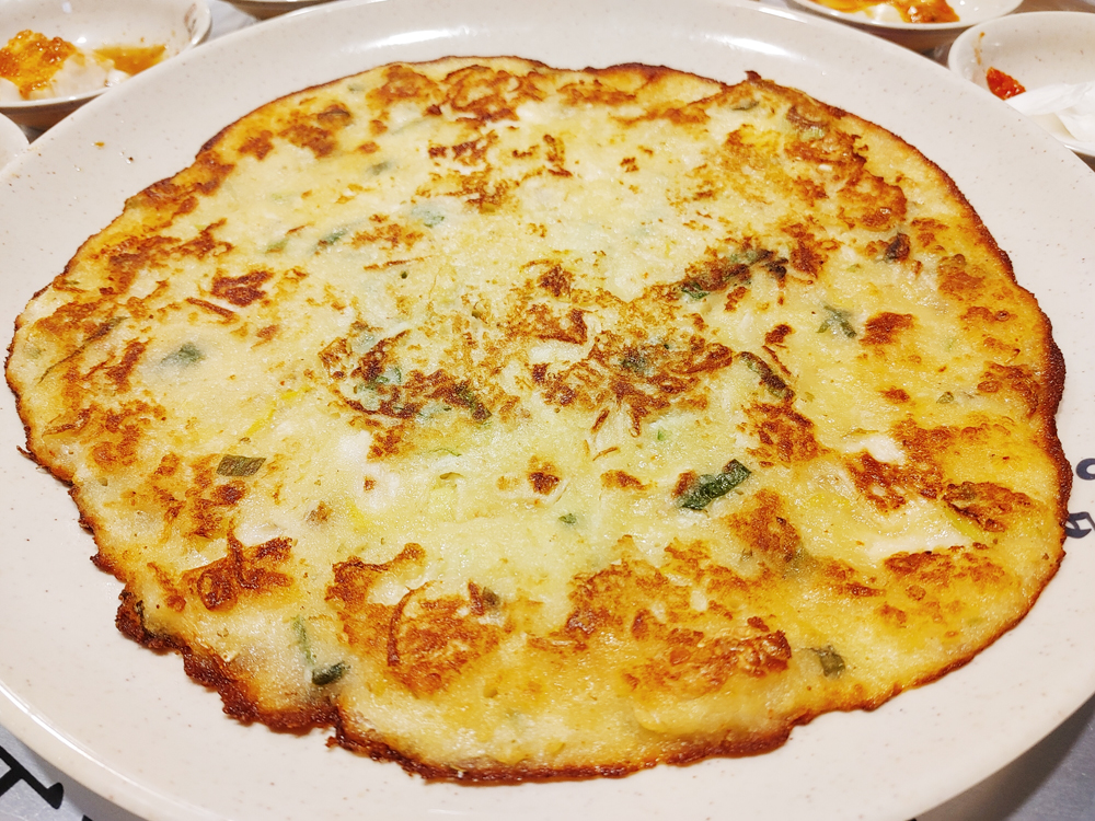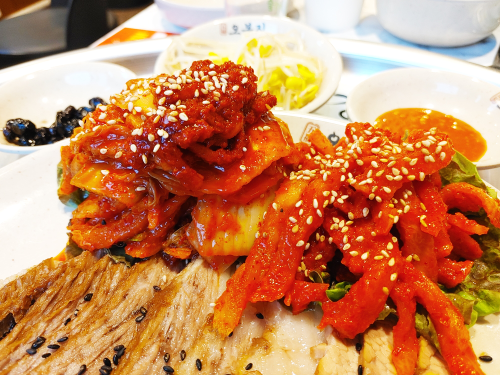 오봉집 도화점의 매생이연포보쌈과 빈대떡입니다.