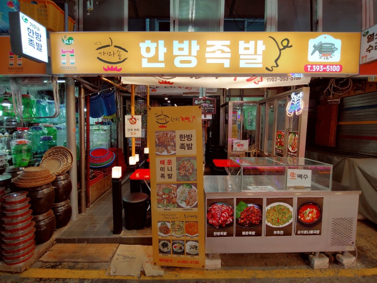 독립문역과 서대문역 사이에 있는 영천시장 내 장충가마솥한방족발 식당입니다.
