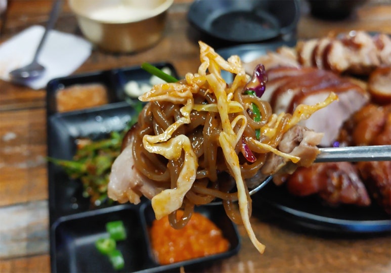 부드러운 족발과 깔끔한 반찬들 그리고 쫄깃한 쟁반막국수의 맛을 즐길 수 있습니다.