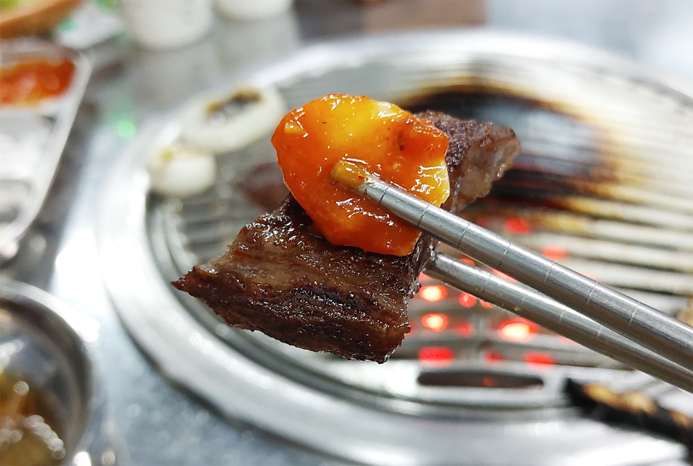 미경산 한우 암소 고기를 맛볼 수 있는데, 워터에이징으로 부드럽고 좋은 맛의 한우 고기를 먹을 수 있었습니다.