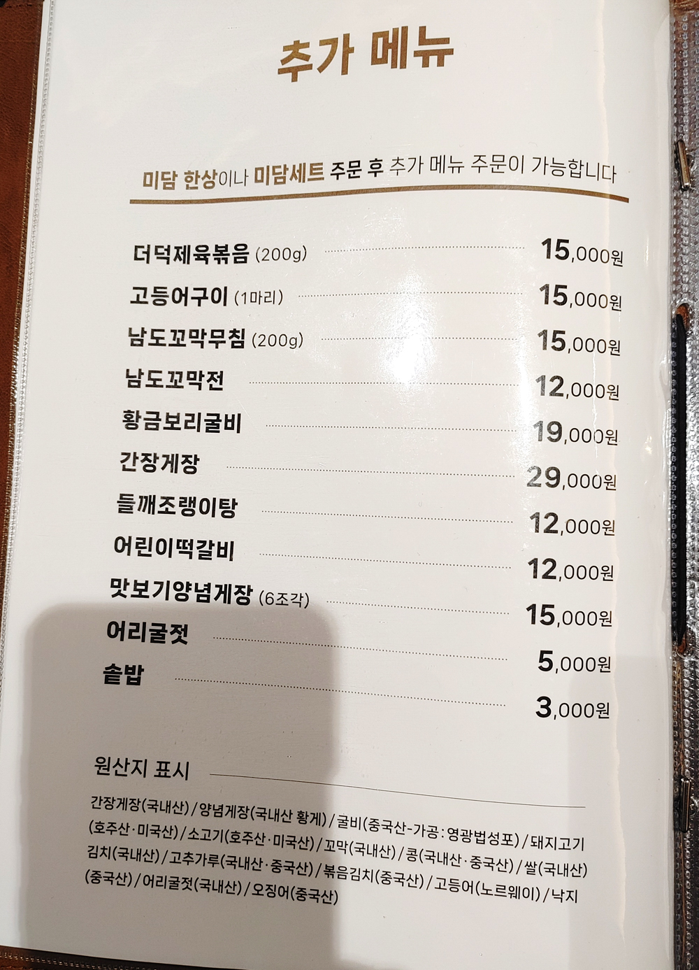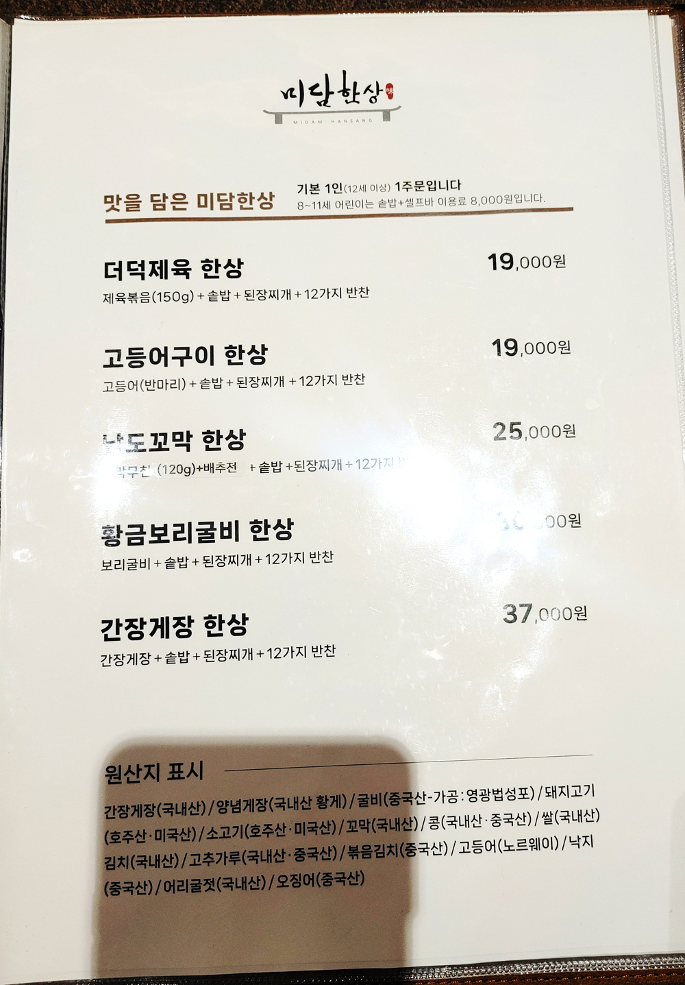 홍제동 한정식 맛집 미담한상의 황금보리굴비 한상과 간장게장 한상입니다.
