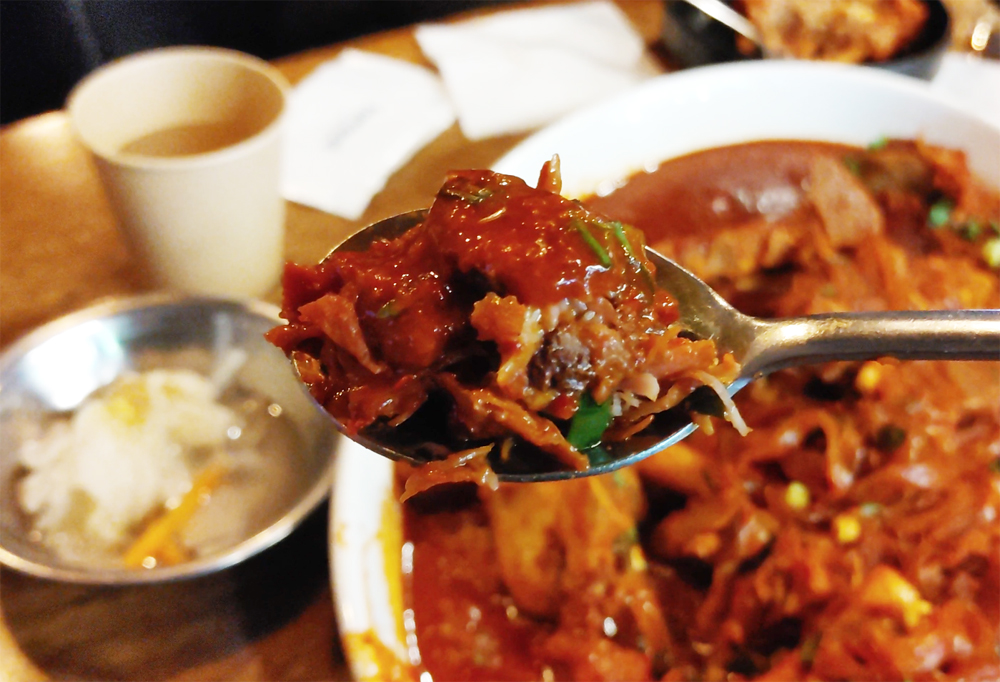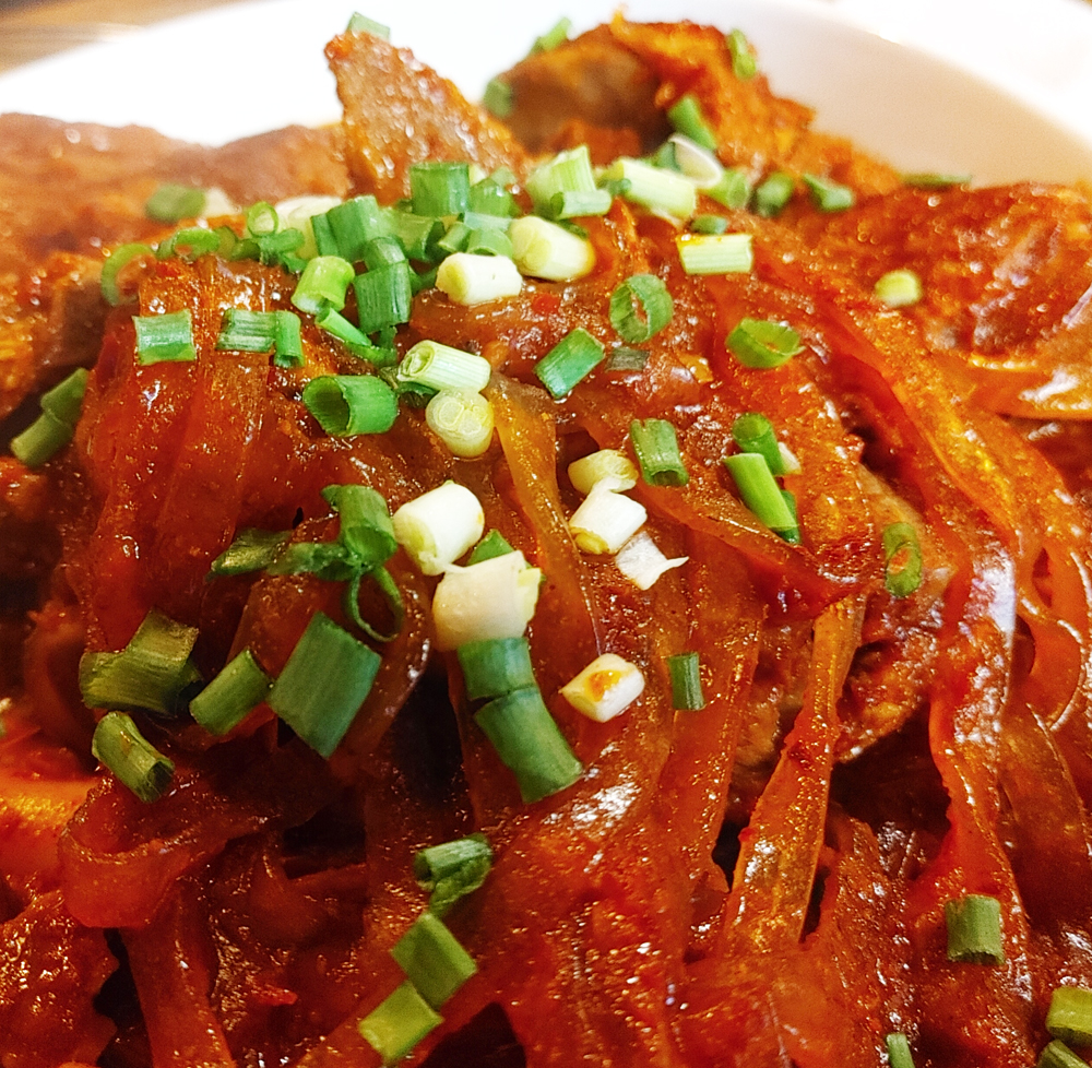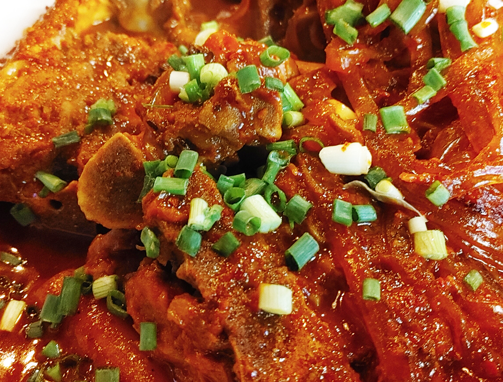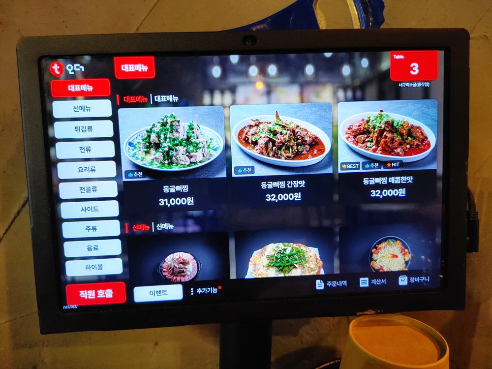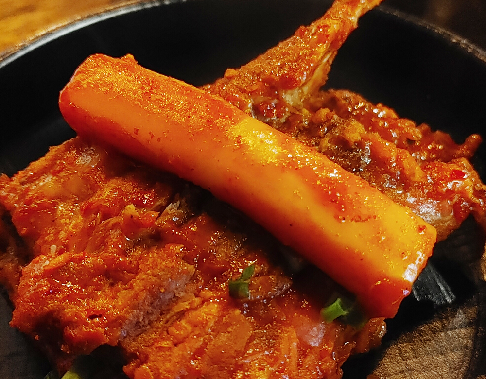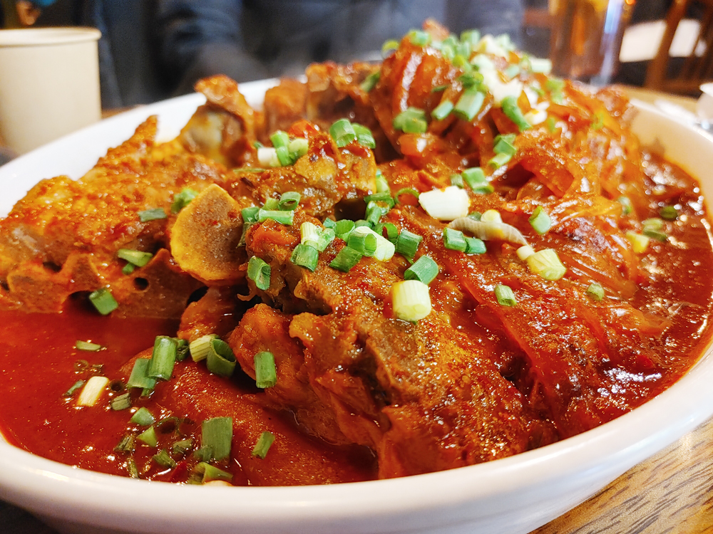 대표 안주가 뼈찜이에요. 그냥 뼈찜, 간장맛, 매운맛이 있어요.