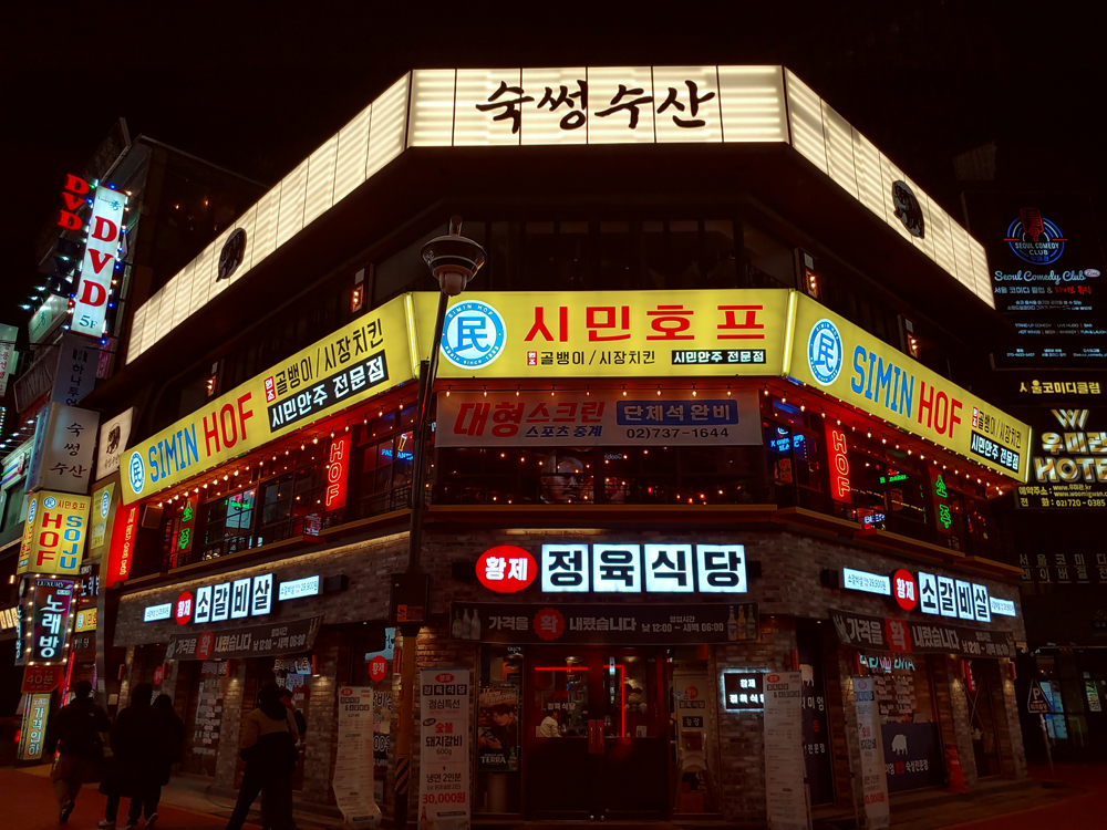 종로 관철동 젊은의 거리 먹자골목 내 2층에 자리한 시민호프입니다.