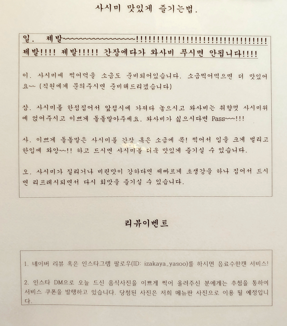 낙원동 종로3가역 부근 2층에 있는 이자카야 야수의 숙성회와 술찜입니다.