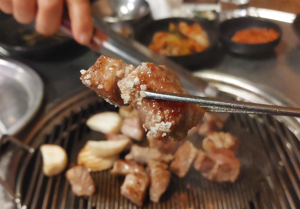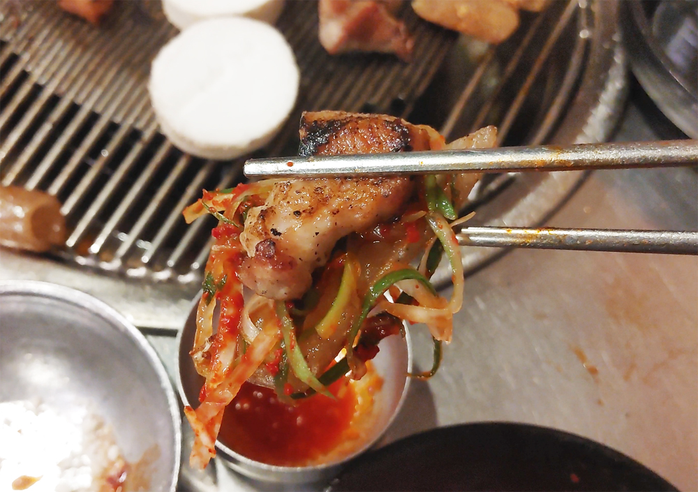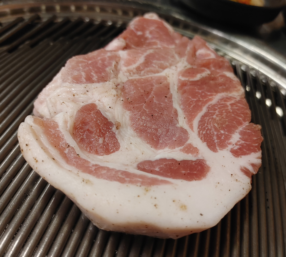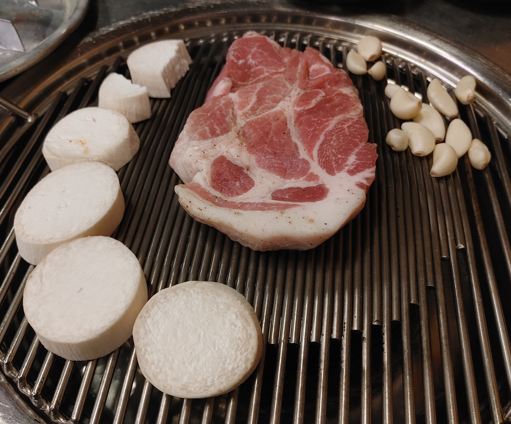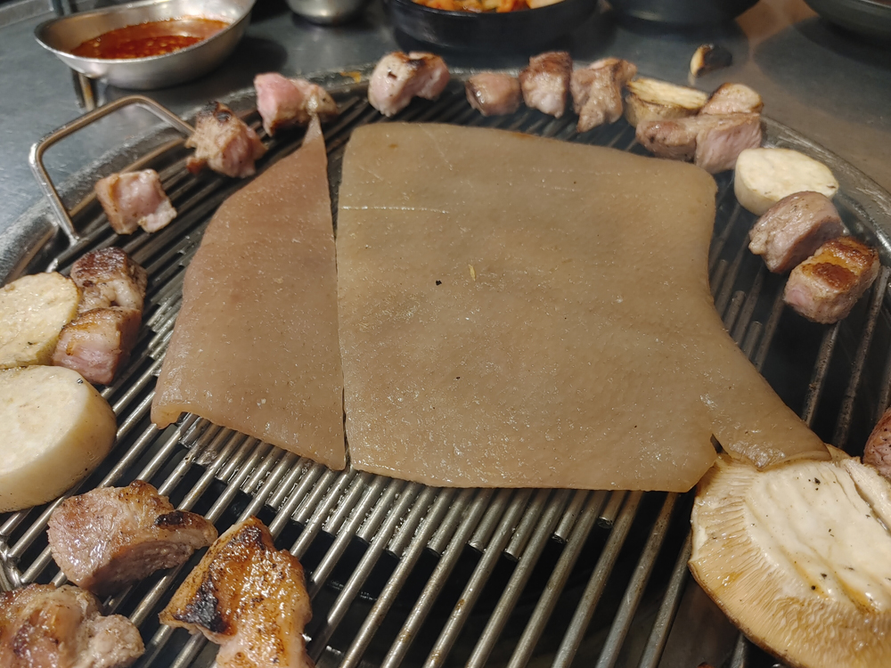 오래된 고기 맛집 마포진짜원조최대포 식당의 소금구이, 열무비빔국수,껍데기입니다.