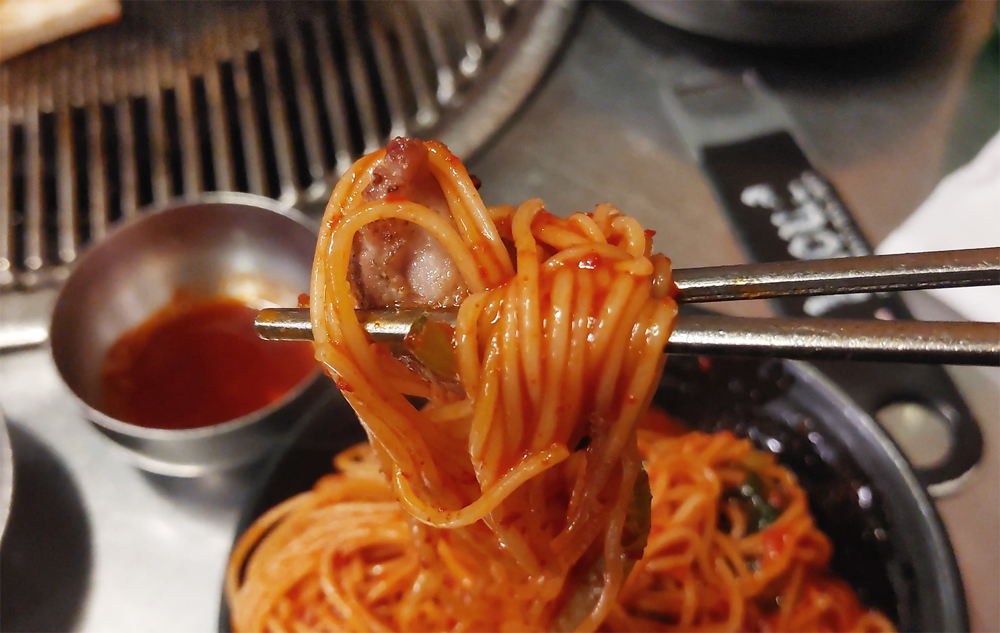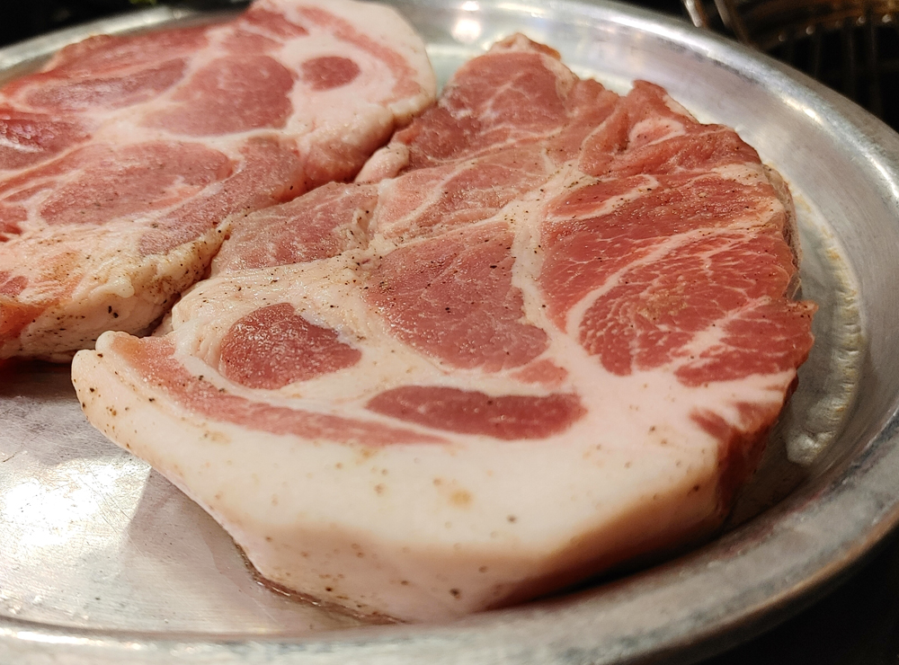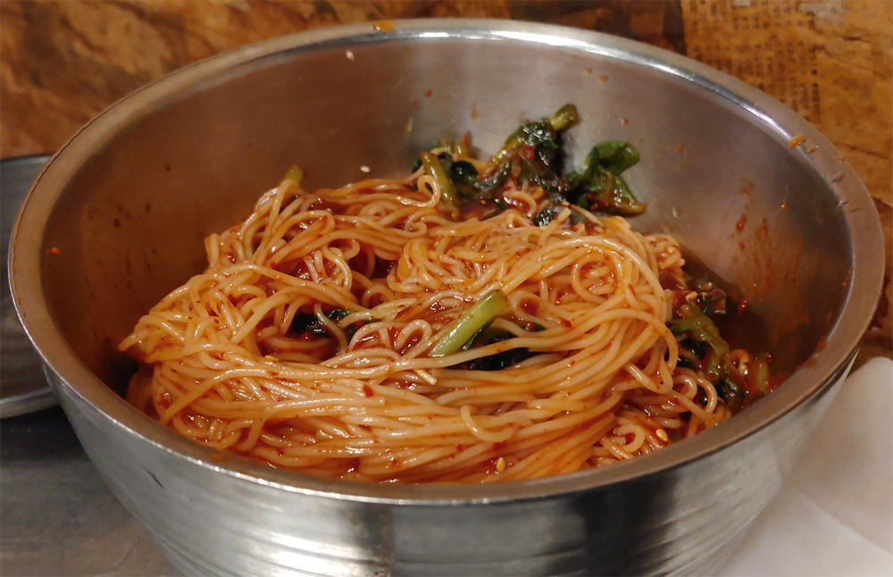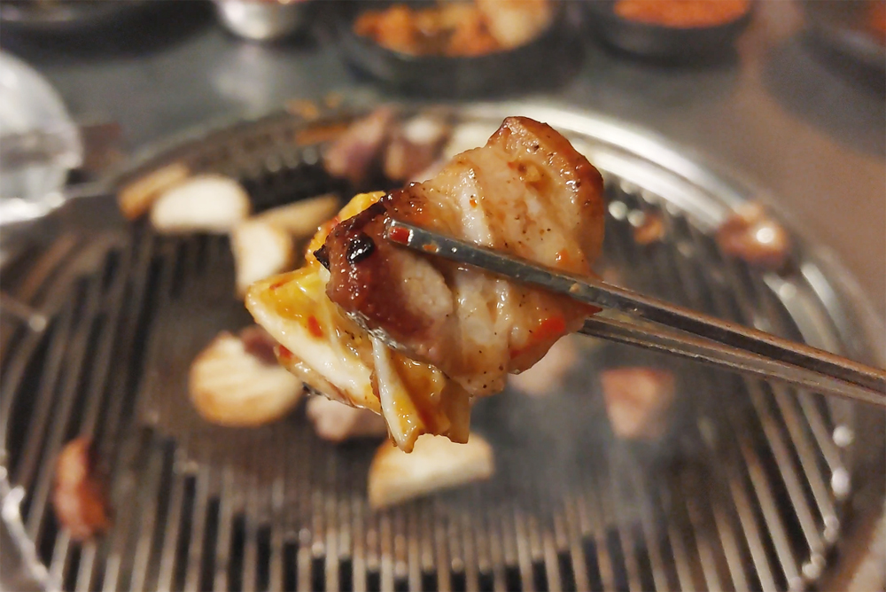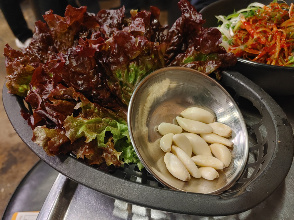 오래된 고기 맛집 마포진짜원조최대포 식당의 소금구이, 열무비빔국수,껍데기입니다.