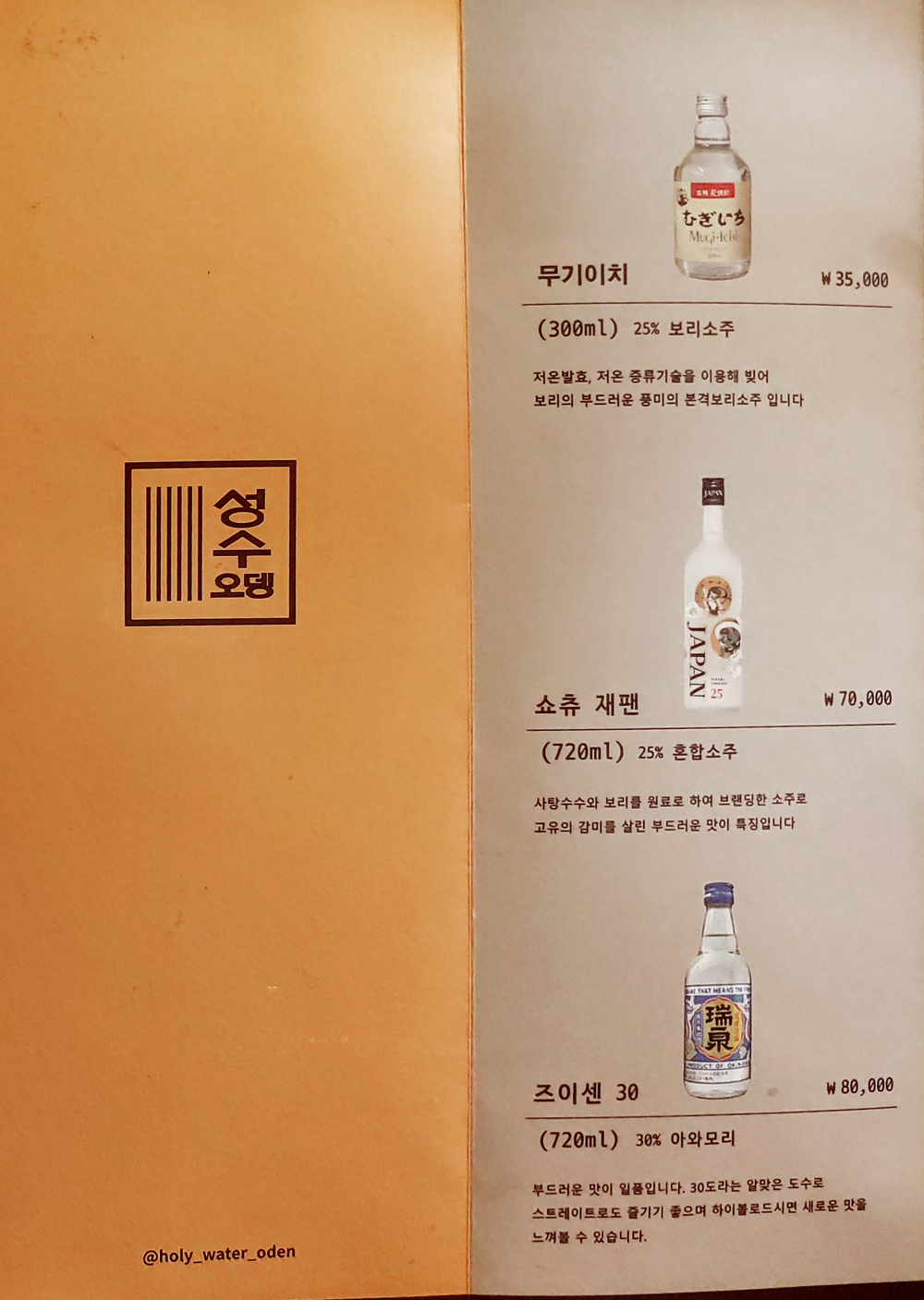 다양한 오뎅을 맛볼 수 있는 홀리세트와 차갑게 혹은 따뜻하게 마실 수 있는 사케 도쿠리입니다.