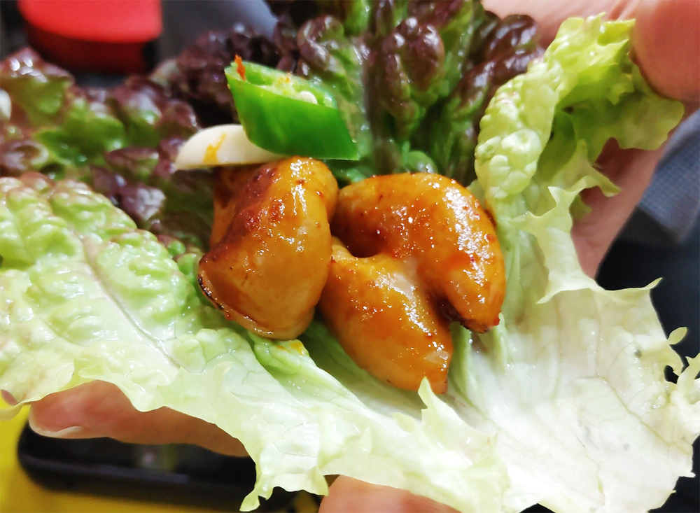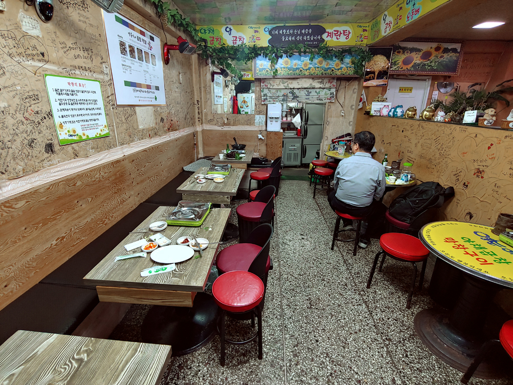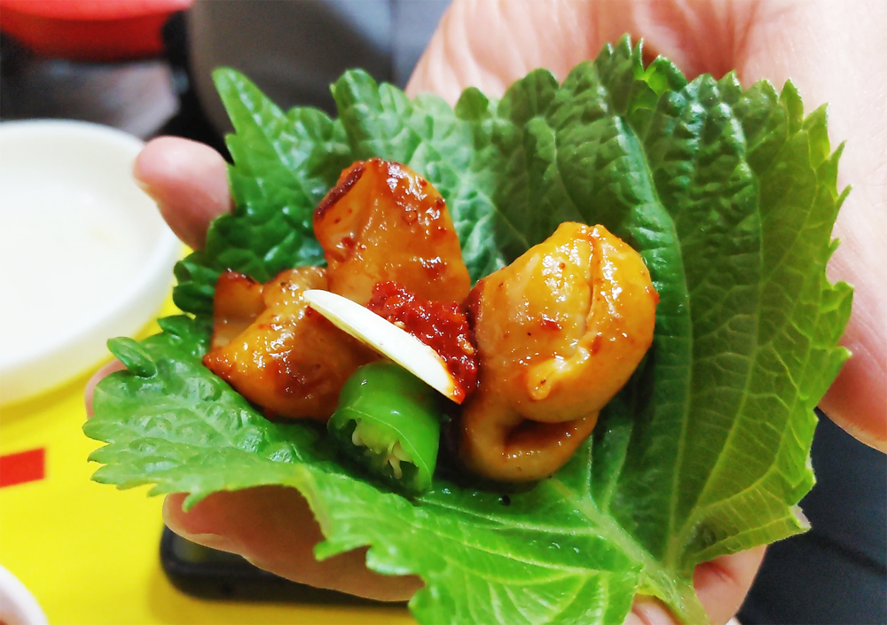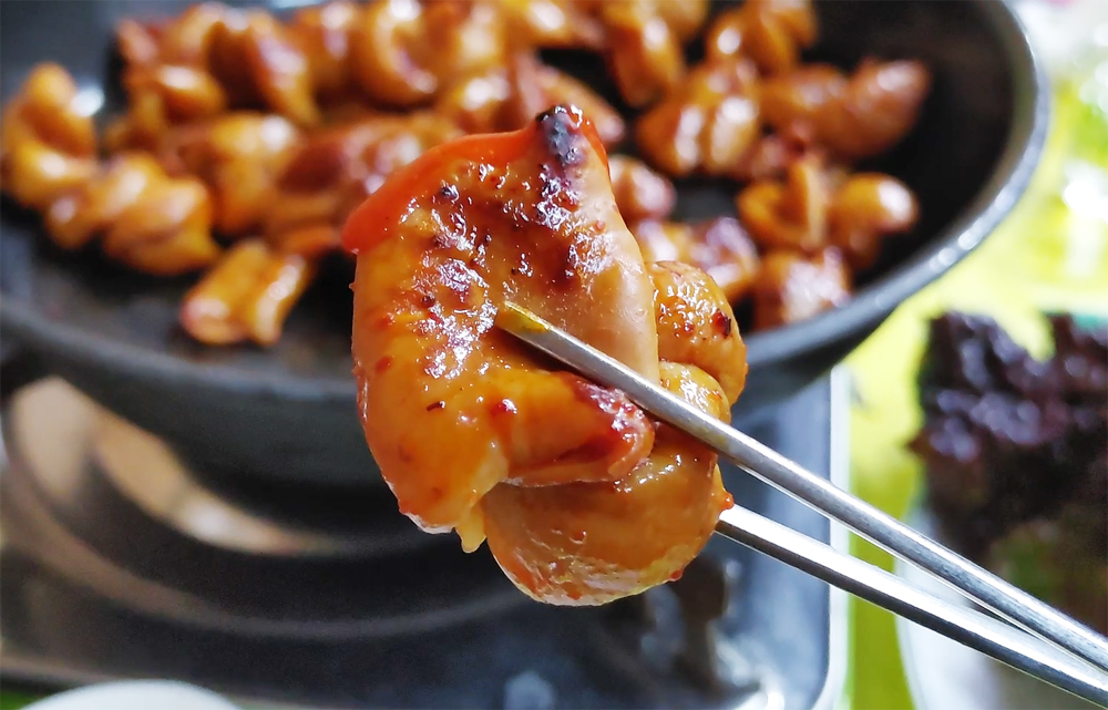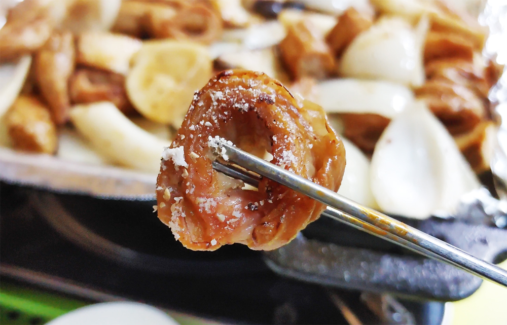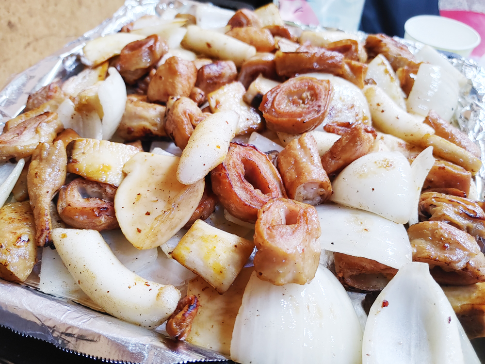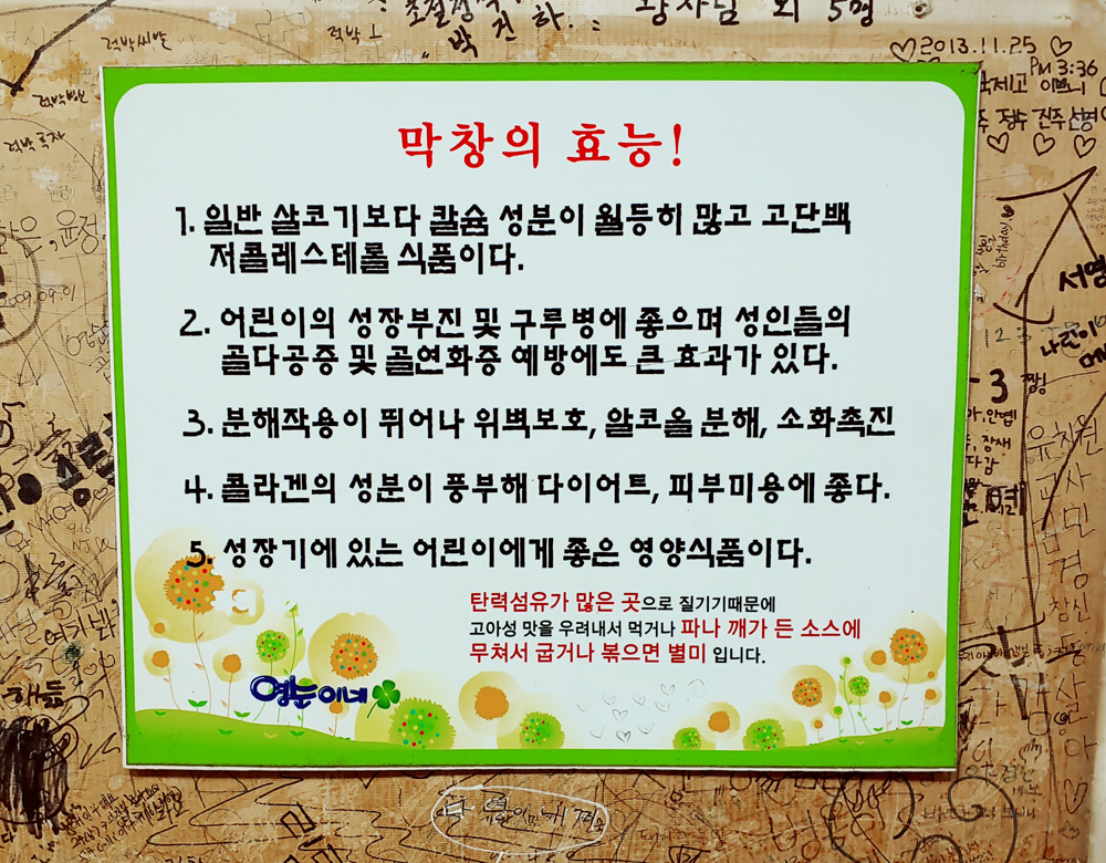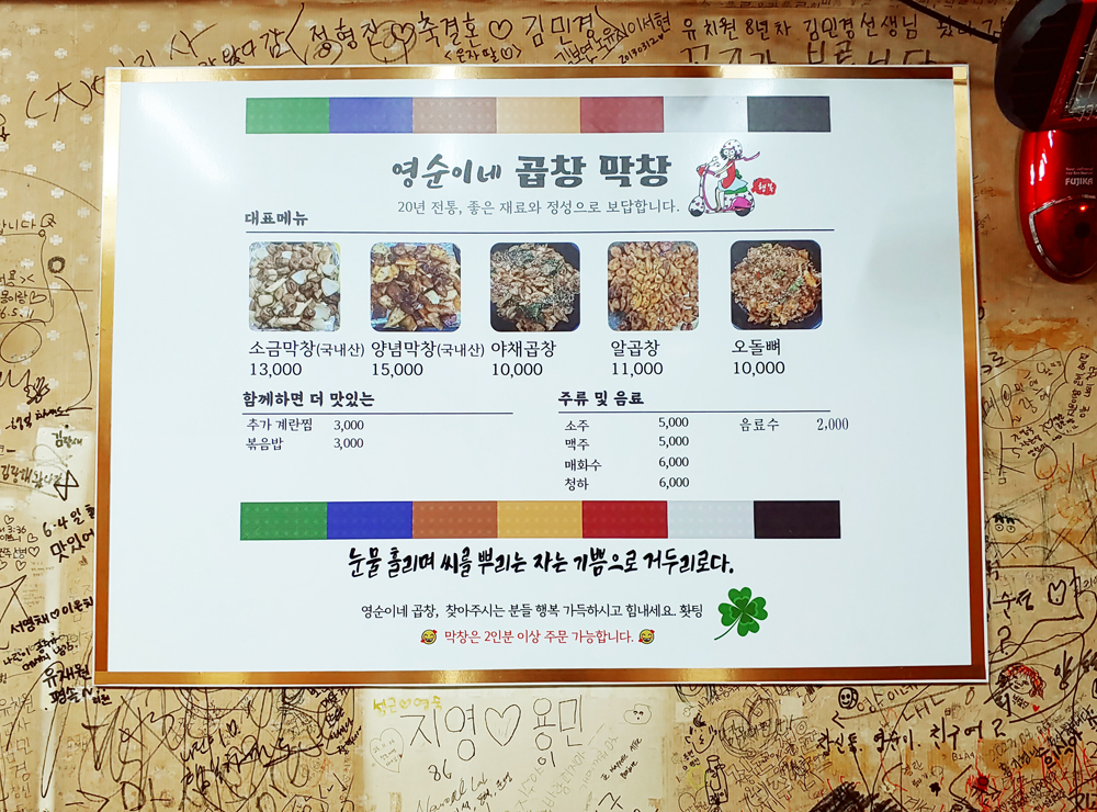 동대문역 1번 출구로 이어지는 골목길에 있는 영순이네 곱창 식당의 알곱창과 막창입니다.