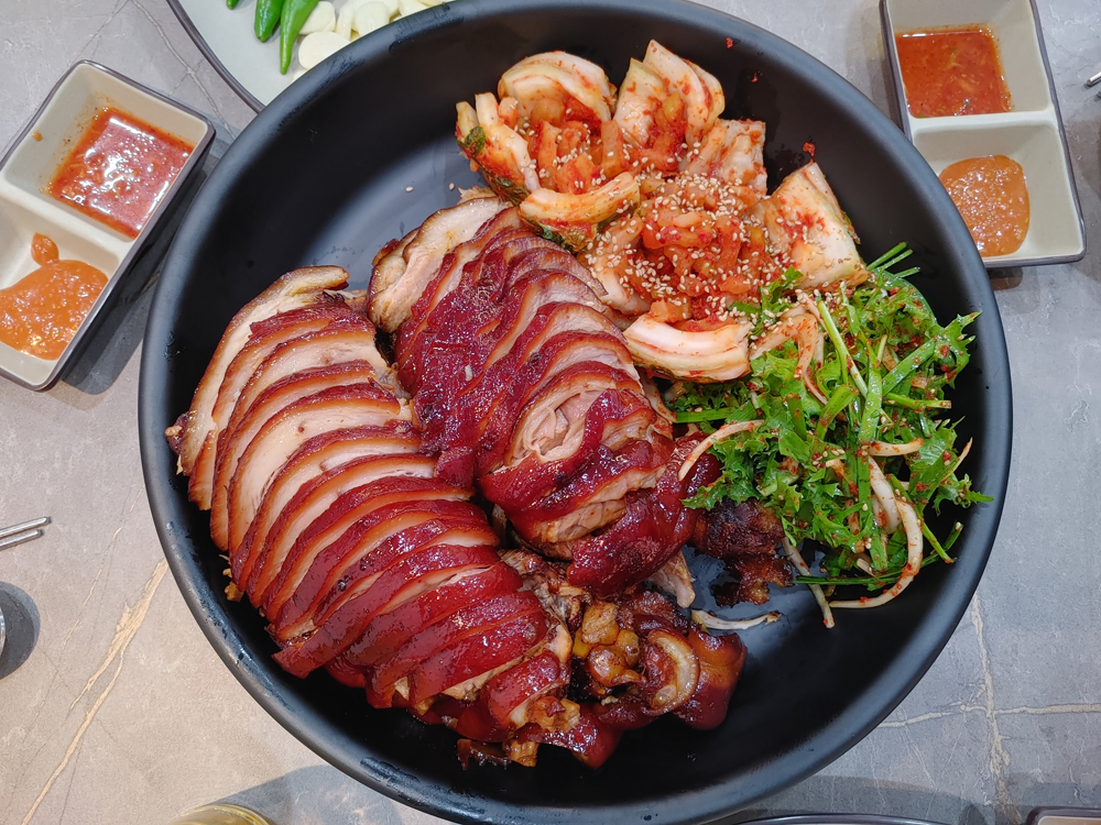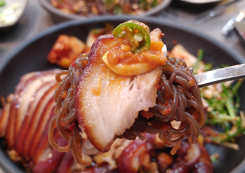 담백하고 부드럽고 쫀쫀한 족발과 쫄깃하고 상큼 매콤한 쟁반국수와의 조화가 아주 맛있습니다.