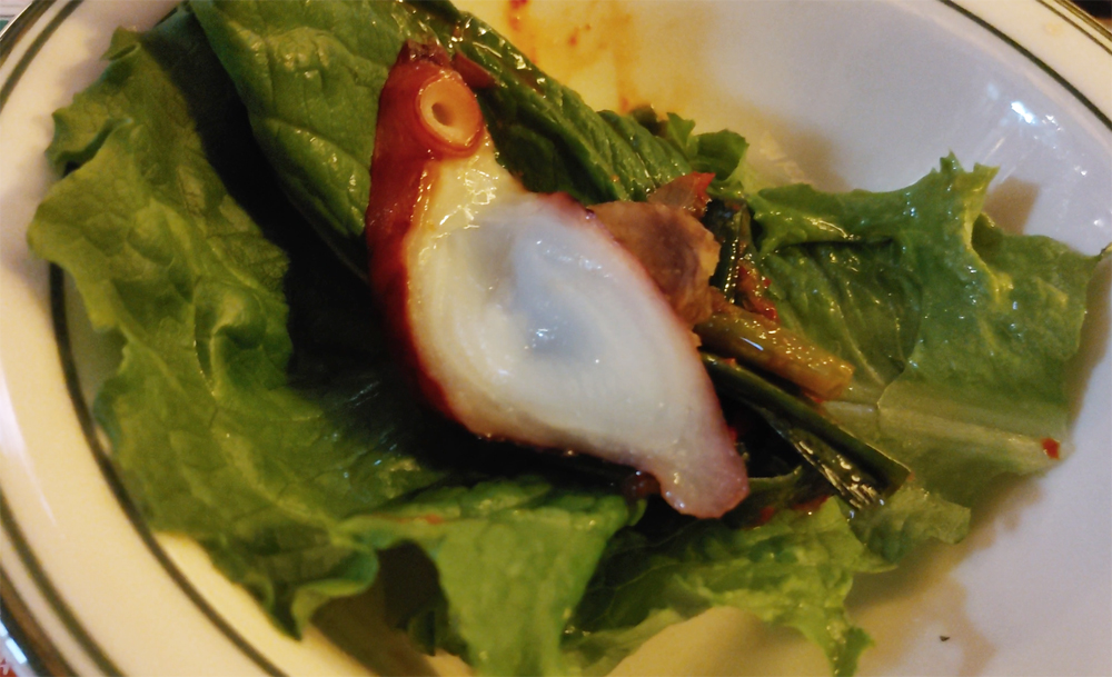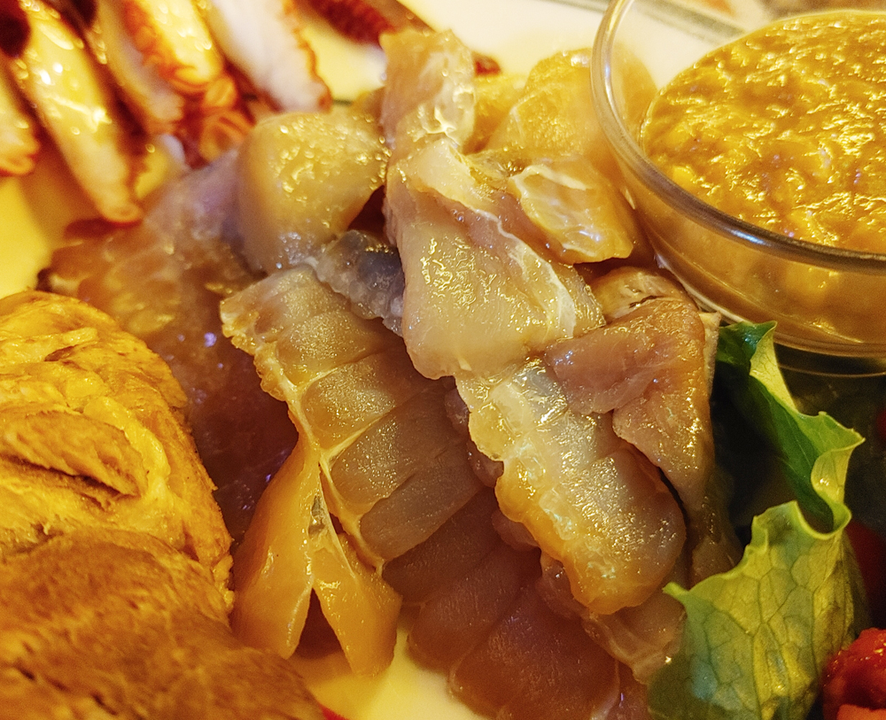 홍어+문어+수육 한상과 계란후라이 한판, 은행마늘구이, 감자튀김입니다.