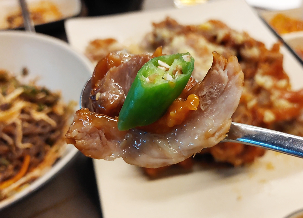 달큰한 마늘 소스가 듬뿍 올라간 수제마늘족발이 아주 부드럽고 맛이 좋네요.