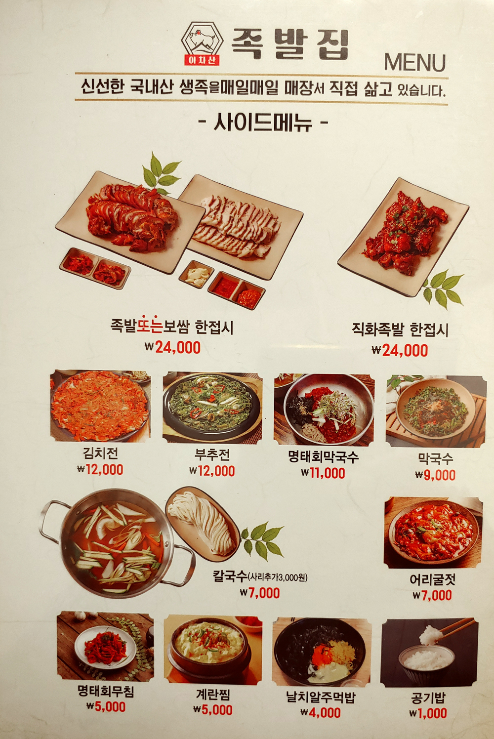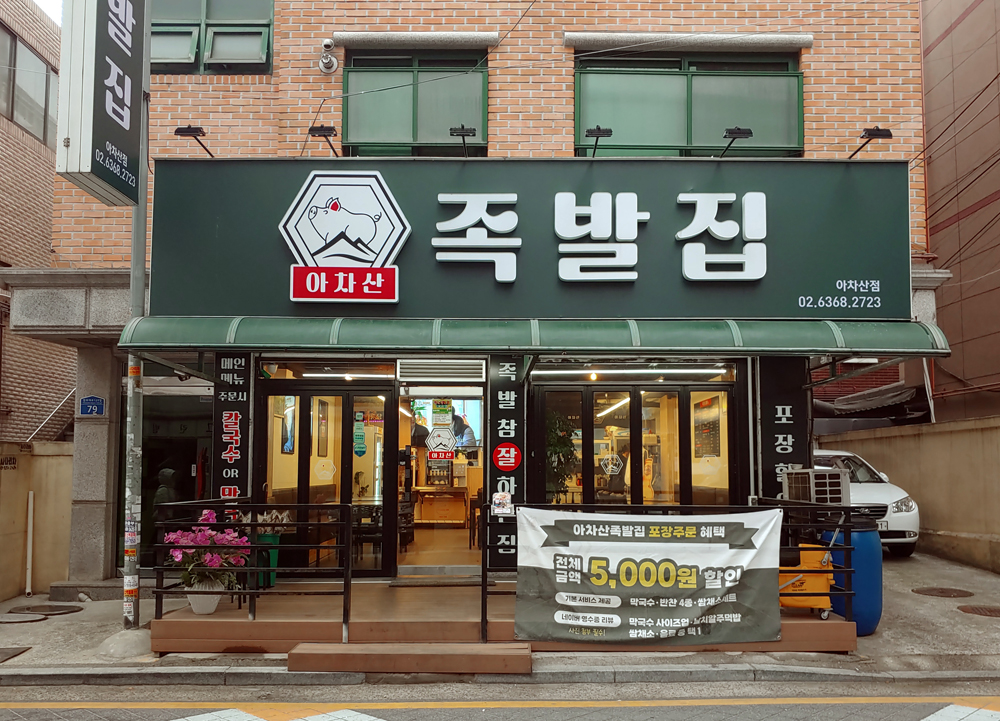 지하철 5호선 아차산역 1번 출구로 나와 쭈욱 올라가면 나오는 족발 전문점입니다.