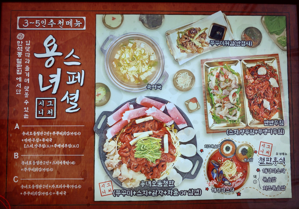 쭈꾸미를 사용한 다양한 요리가 나오는 용녀스페셜이 대표입니다.