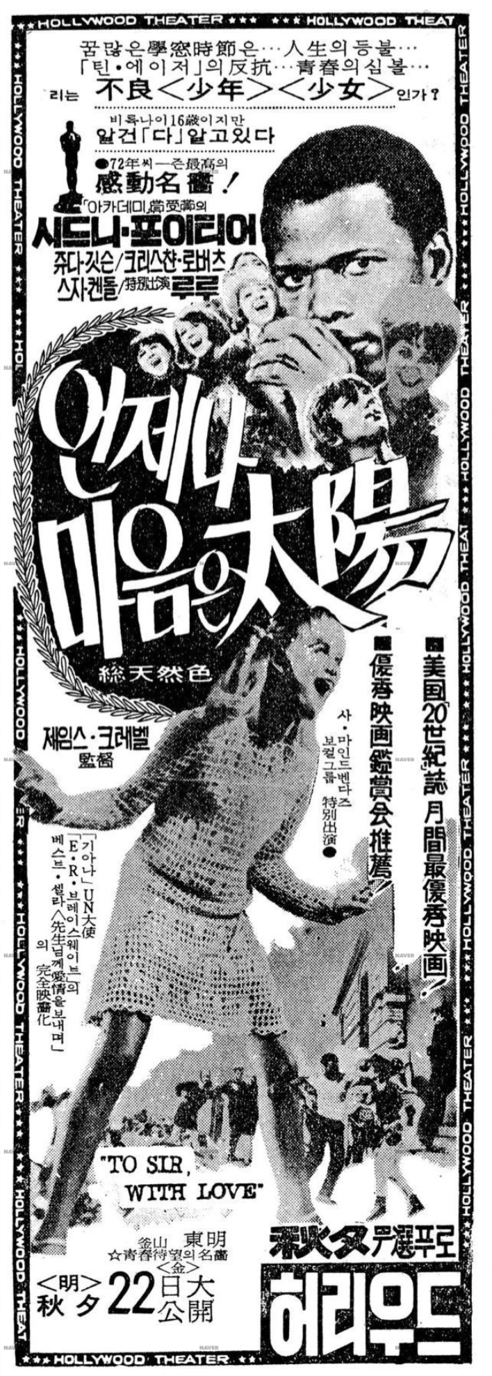 [To Sir With Love]는 1959년의 동명 소설이 원작으로, 1967 개봉된 영국 영화입니다(미국 영환줄 알았는데... 아니었네요). 근데 미국에서 먼저 개봉되었네요. 원작 소설은 E. R. 브레이스웨이트 작가의 자전적 이야기라고 합니다.