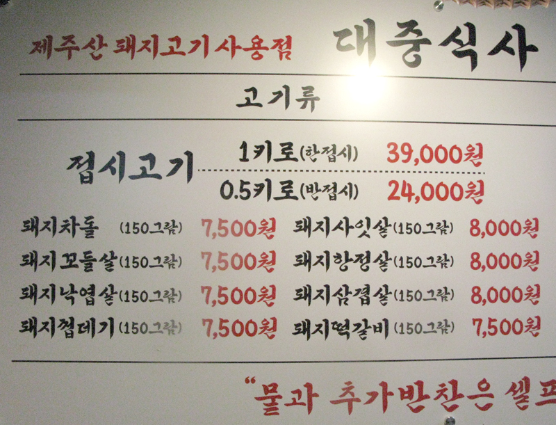 식사 메뉴도 따로 있으니 고기 1인분에 밥이나 면류를 먹어도 좋겠습니다.