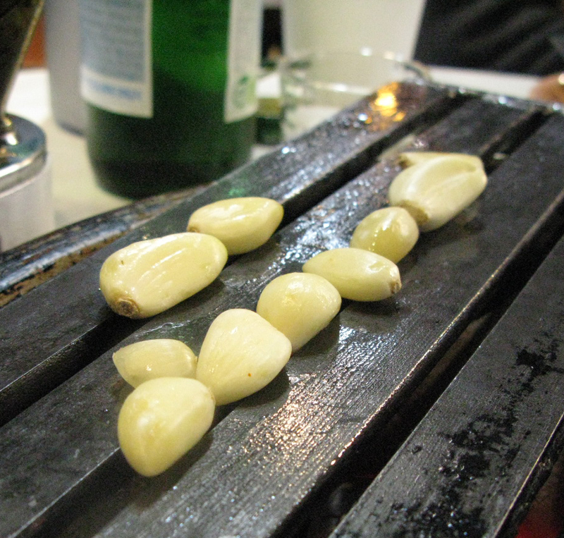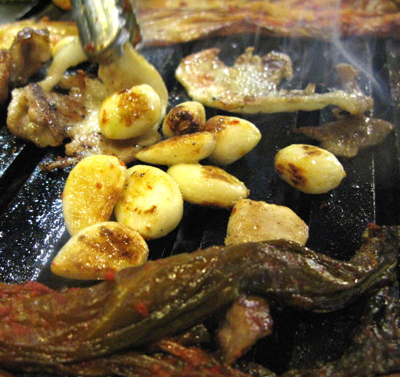 돼지기름을 한껏 두른 구운마늘은 고소하면서도 뭔가 묘한 맛이 나지요.