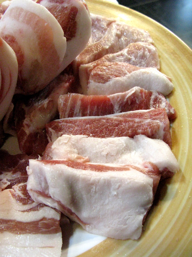 돼지차돌(둥근 것)은 항정살과 뽈살을 둥글게 말아 얼린 것이라고 합니다.