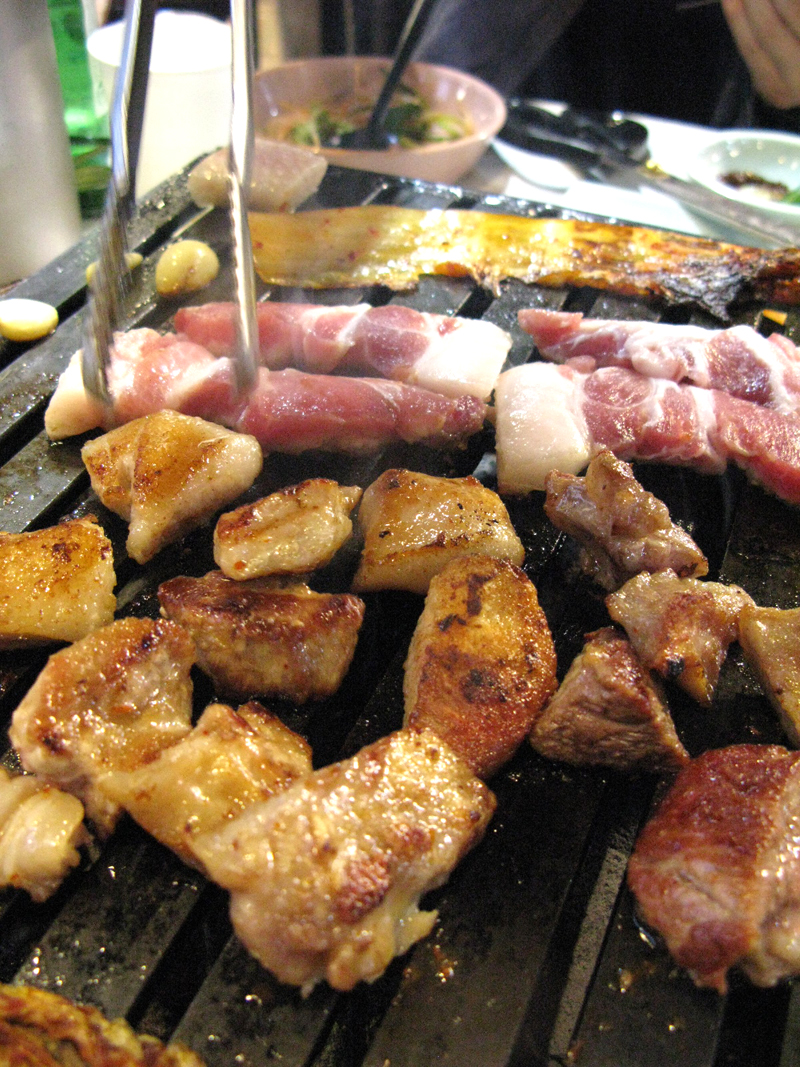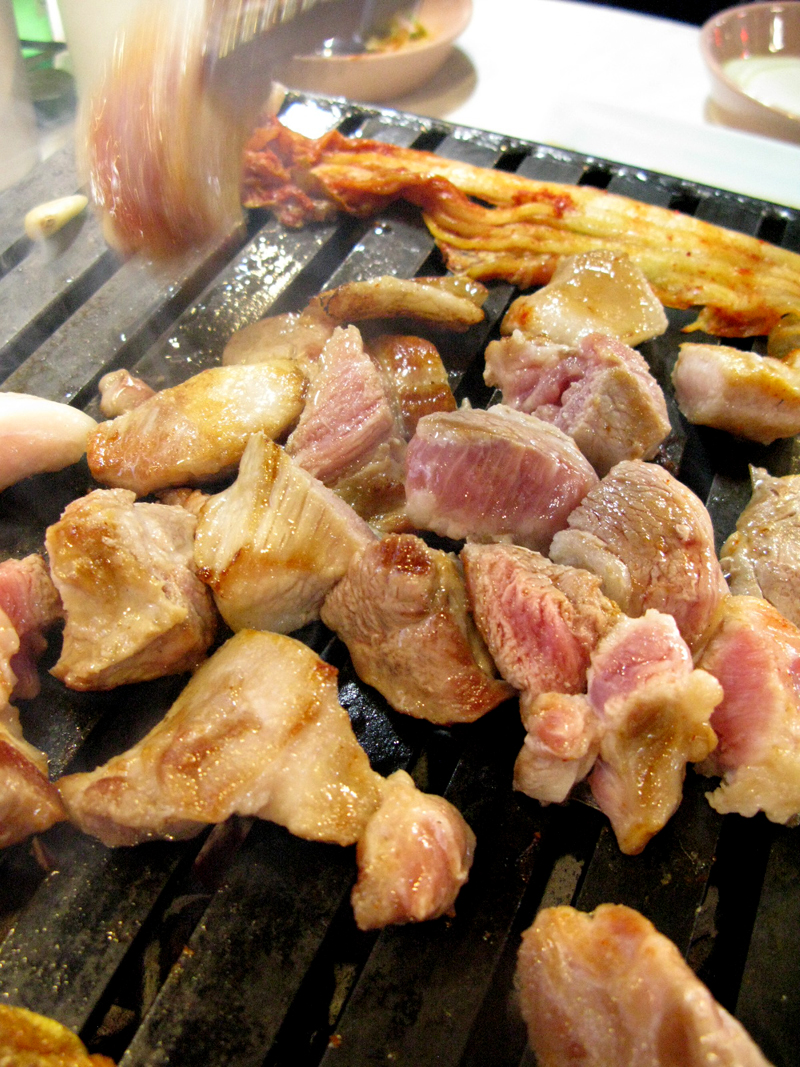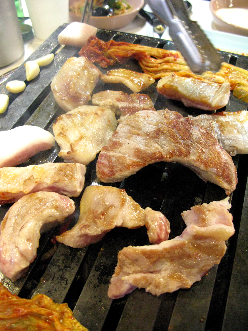 삼겹살도 두께는 얇은 편이라 너무 오래 익히는 것은 좋지 않겠습니다.