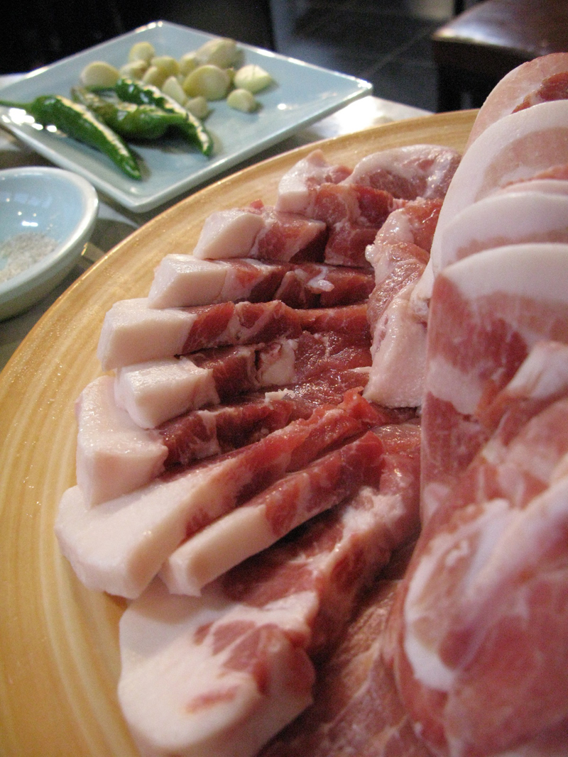 삼겹살도 두께는 얇은 편이라 너무 오래 익히는 것은 좋지 않겠습니다.