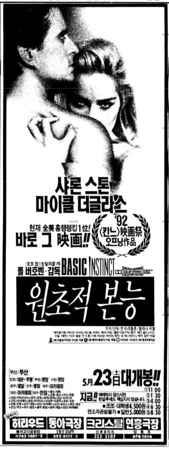 에로틱 스릴러의 대표작이며, 후에 '원초적'이나 '원죄적' 이란 수식어가 달린 아류작을 배출하게 만들었던 [원초적 본능]은 국내에 1992년 5월 23일 개봉했습니다.