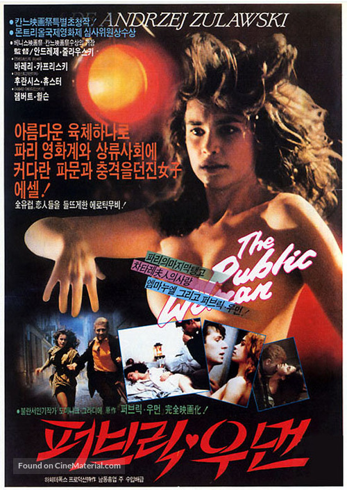 국내에서도 개봉한 바가 있는 ‘퍼블릭 우먼’이란 작품입니다. 제목은 뭔가 묘합니다만, 우크라이나 출신의 멜로 감독 안드레이 줄랍스키의 작품입니다. 국내에는 1988년 개봉했구요, 그리고 1997년 재개봉했습니다. 의외네요. 뭐 그렇게 대단한 작품이다싶지는 않았는데 재개봉을 했네요. 이건 프랑스 영화인데요, 그래서 원제명은 'La Femme Publique'입니다.