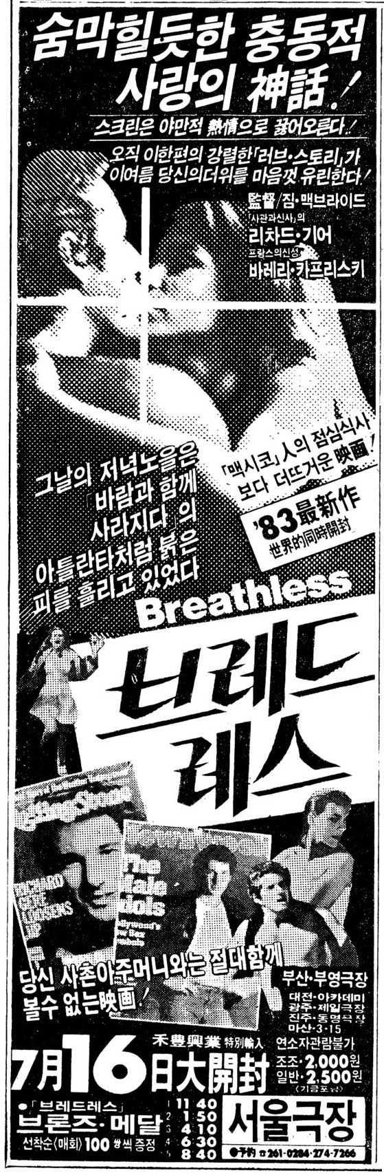 원작인 ‘네 멋대로 해라’는 1959년 작이구요, ‘브레드레스’는 1983년 작입니다. 시차가 꽤 있습니다.