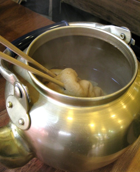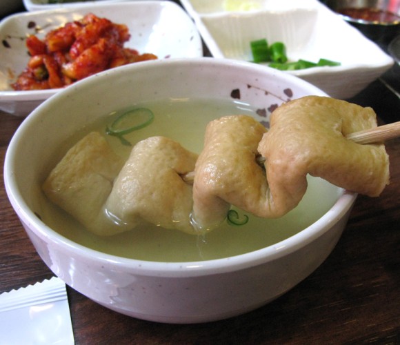 이곳의 특색은 족발이 나오기 전에 어묵주전자를 주는데요, 안에는 인원수에 맞춰 어묵꼬치가 있습니다.
