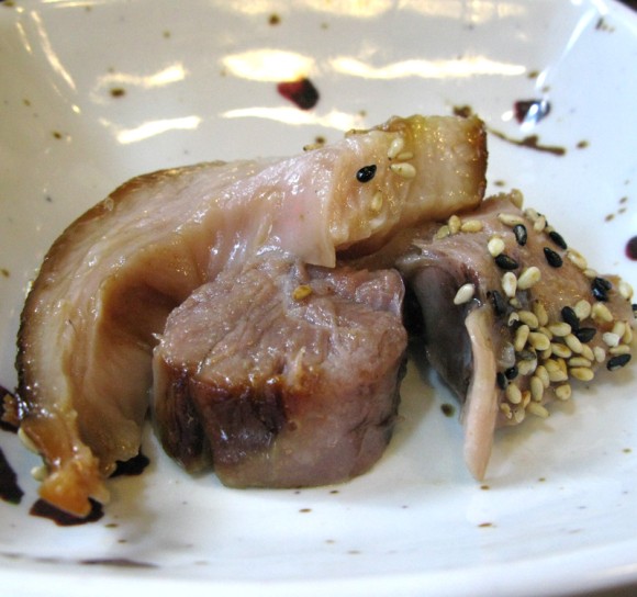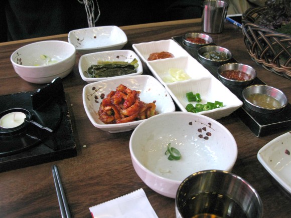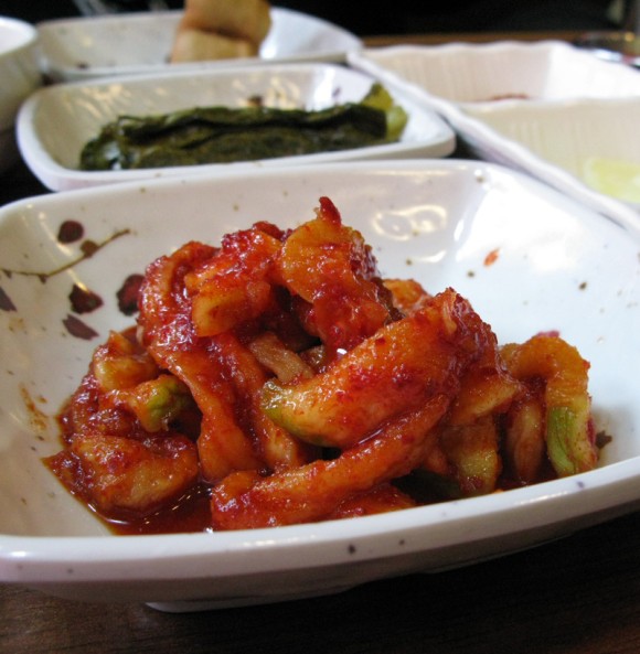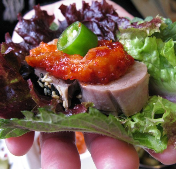반찬으로 나온 장아찌에 싸서 먹어봅니다.