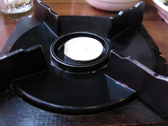 족발 받침에는 초가 있어서 접시를 데워서 족발이 바로 식지 않게 해줍니다. 세심한 서비스네요.